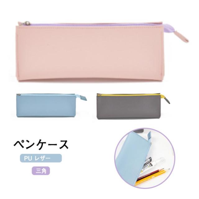 ペンケース PU レザー 大容量 おしゃれ シンプル PU 革 レディース 三角 おしゃれ かわいい 筆箱 可愛い スリム 大人 大人女子 高校生 コンパクト ポーチ 社会人 大学生 無地 送料無料 ギフト プレゼント 推し活