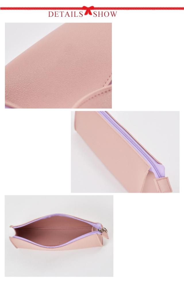 | 三角のかわいい形とレザー調の上品さを合わせ持ったペンケースです。 女性らしいパステルカラーが選べる3色。 持ち運びしやすいコンパクトサイズ。バッグの中でも机の上でも邪魔になりません。 シンプルなデザインで使いやすく、高級感を感じるジップ式ペンケース。 おしゃれなデザインで、筆箱、コスメポーチ、メガネケースとしてもお使いいただけます オンオフどちらでも使えるシンプルなデザインなので、ビジネスの場にも馴染みます。 | |