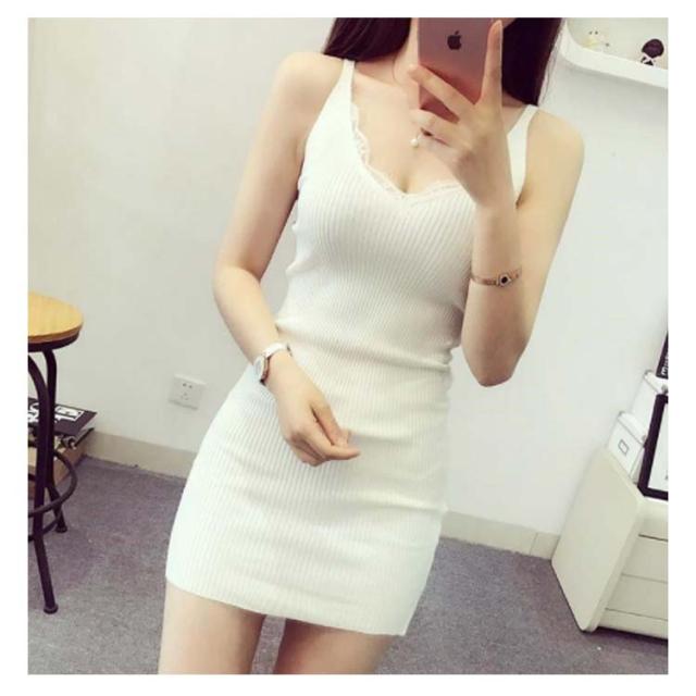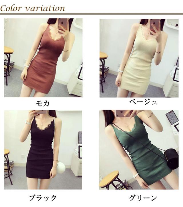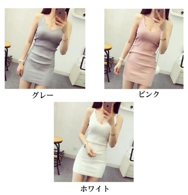 スリップ タイトワンピース ミニ丈 送料無料 ニットワンピ ニットワンピース タイト チュニックワンピース vネック キャミソール ミニワンピース 無地 インナー ワンピース セクシー フェミニン オシャレ シンプル 無地 リブ 全7色