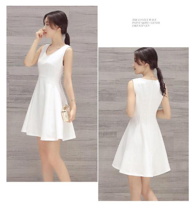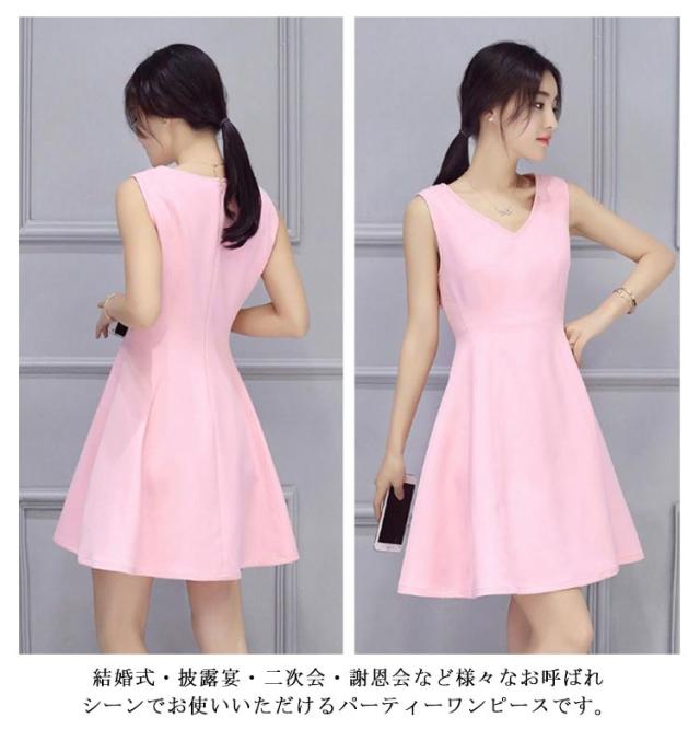 ノースリーブワンピース Vネック パーティードレス ミニ レディース ノースリーブ aラインワンピース フレアワンピース ミニワンピース タイト 無地 大人 きれいめ お呼ばれ 結婚式 二次会 白 黒 ピンク ホワイト ブラック 【送料無料】