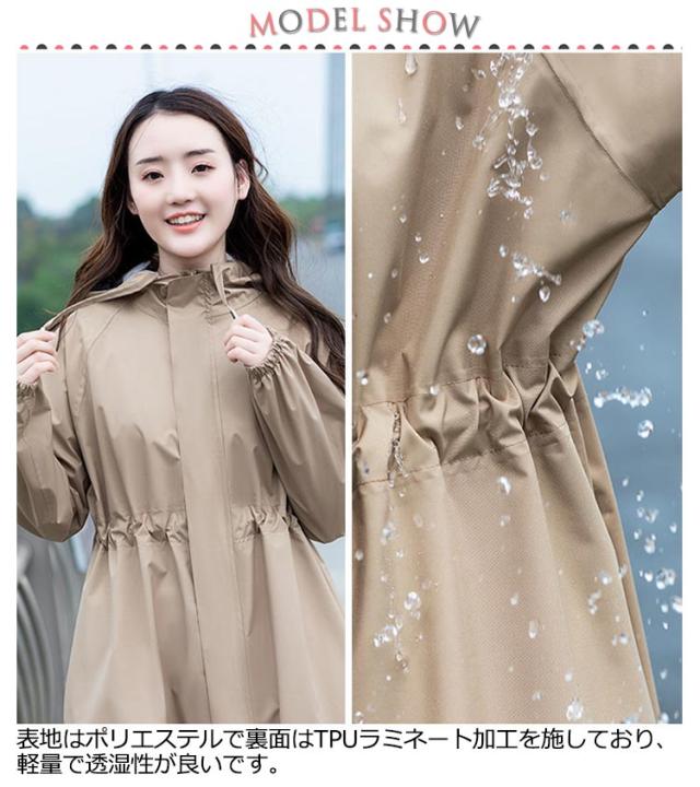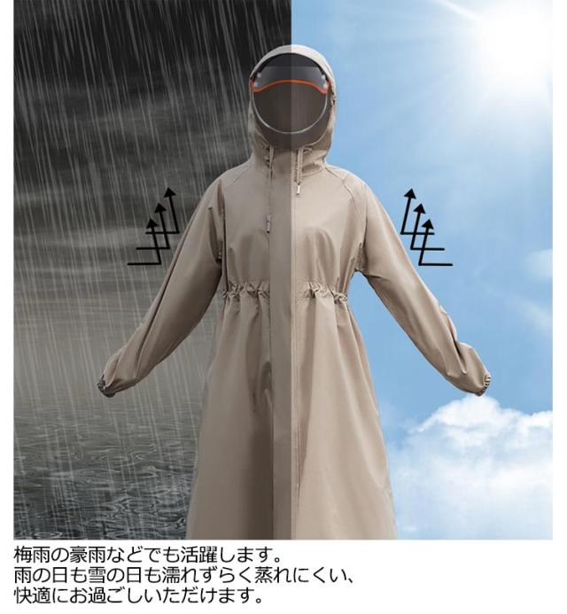 | デザイン性の高いトレンチコート風デザインのレインコートです。 おしゃれなだけでなく防水性、透湿性、撥水性、防風性の高い生地を使用 。 表地はポリエステルで裏面はTPUラミネート加工を施しており、軽量で透湿性が良いです。 縫い目にも防水加工を施工しレインコートとしての機能を最大限に発揮します。 通勤通学、アウトドア、ゴルフ、スポーツ観戦、送迎などの場合でお使いいただけます。 梅雨の豪雨などでも活躍します。 雨の日も雪の日も濡れずらく蒸れにくい、快適にお過ごしいただけます。 スムーズに着脱できるオープンファスナーを採用、急な雨でもサッと着ることができます。 雨の日の自転車で、機能もおしゃれも妥協したくない人のための、高い機能性とデザイン性を両立させたレインコートです。 | |
