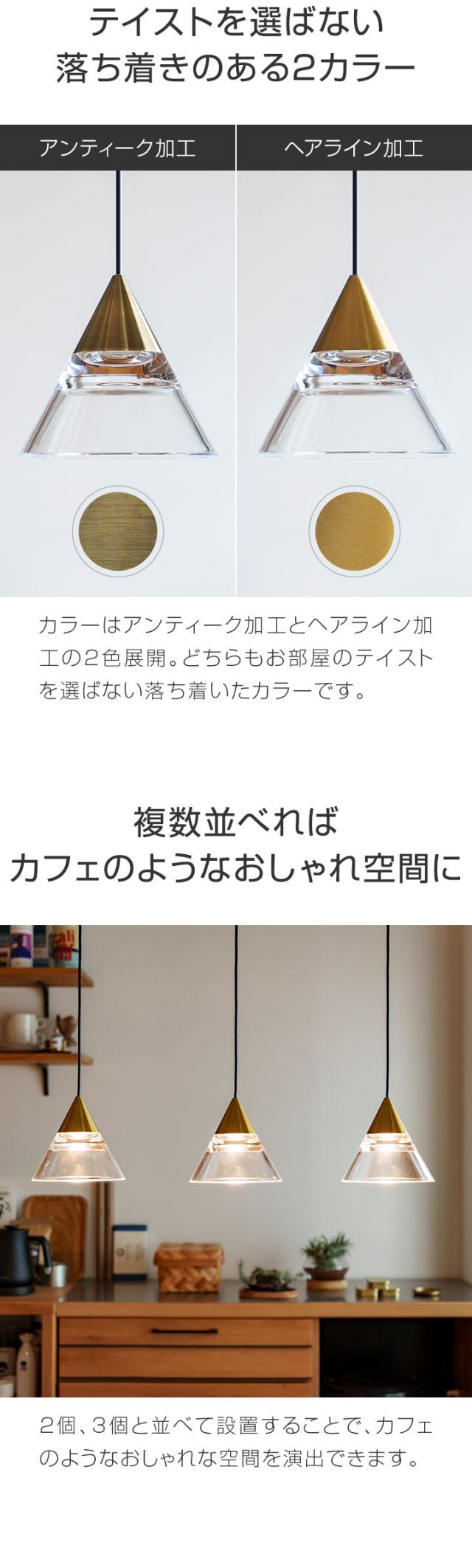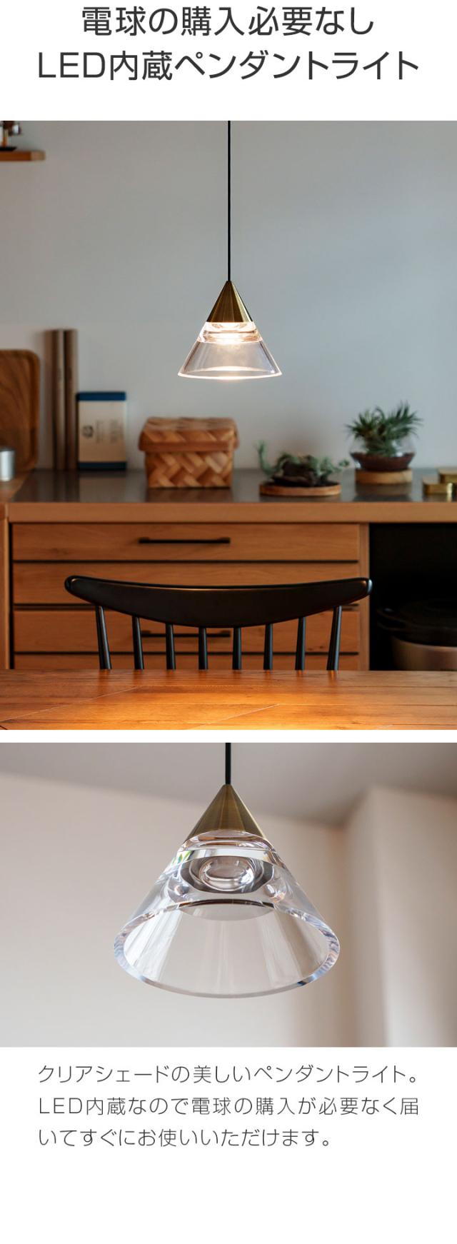 ペンダントライト 1灯 LED一体型 天井照明 クリアシェード LED内蔵 照明 引掛シーリング ダクトレール シーリングライト 北欧 おしゃれ カウンター リビング ダイニング 吊下げ ペンダントランプ 三角 アンティーク/ヘアライン 1年保証 送料無料