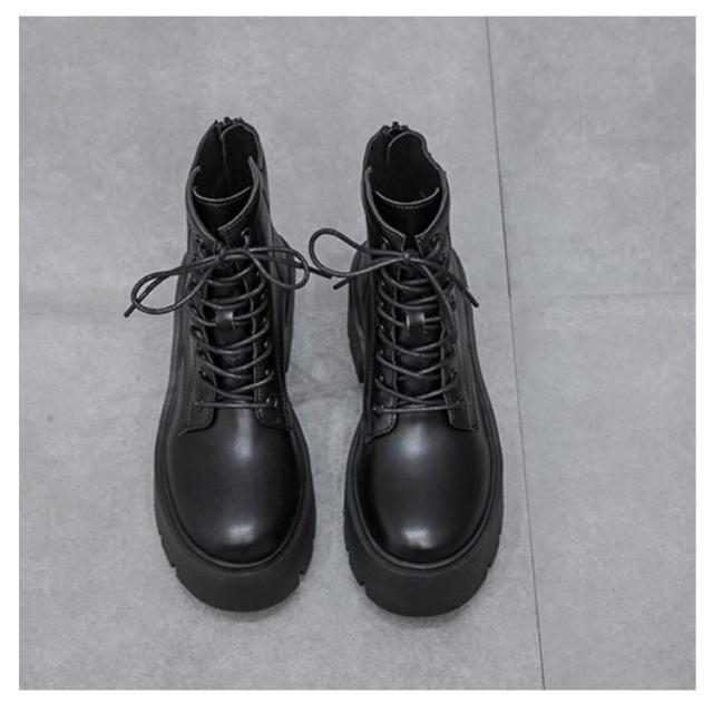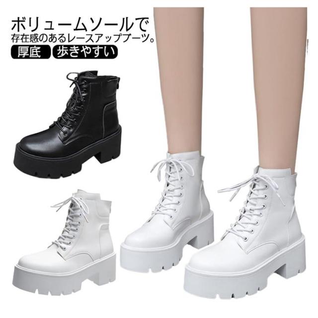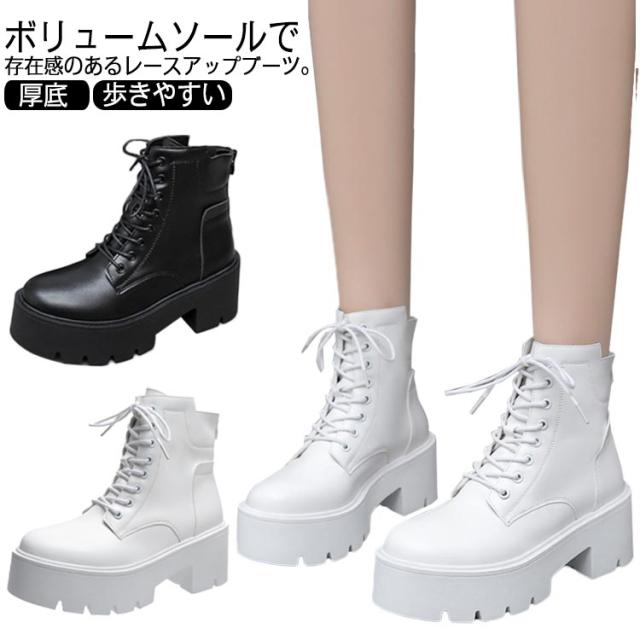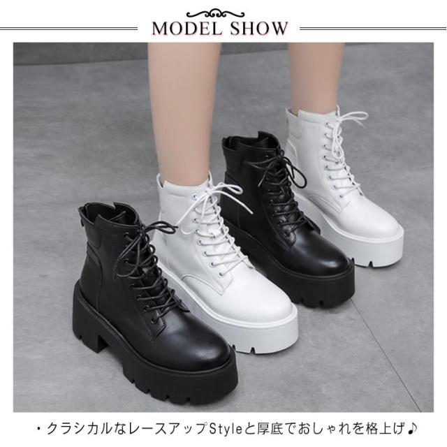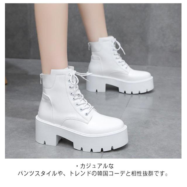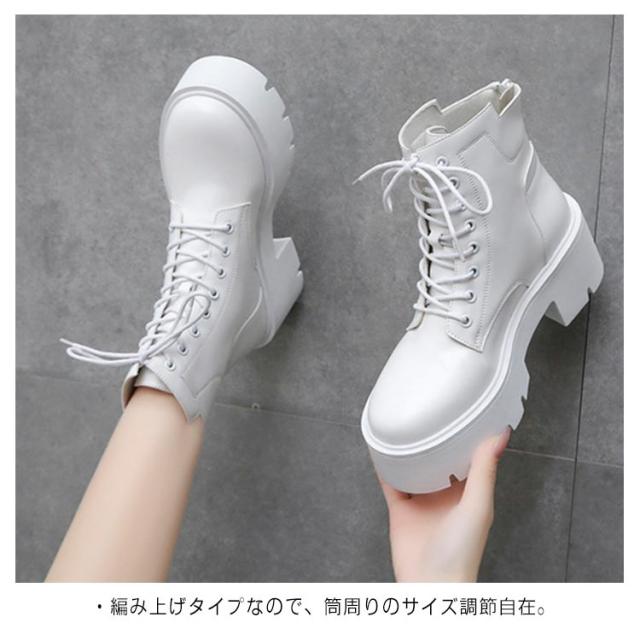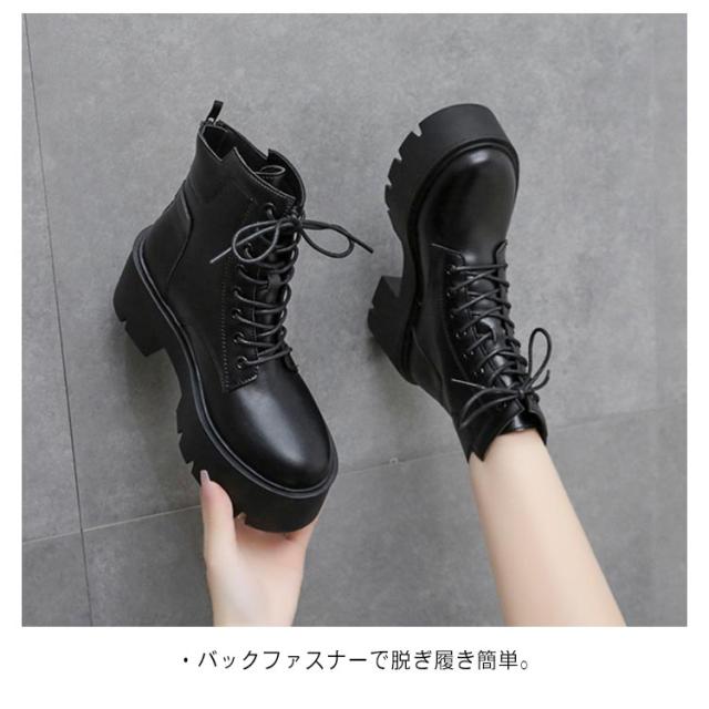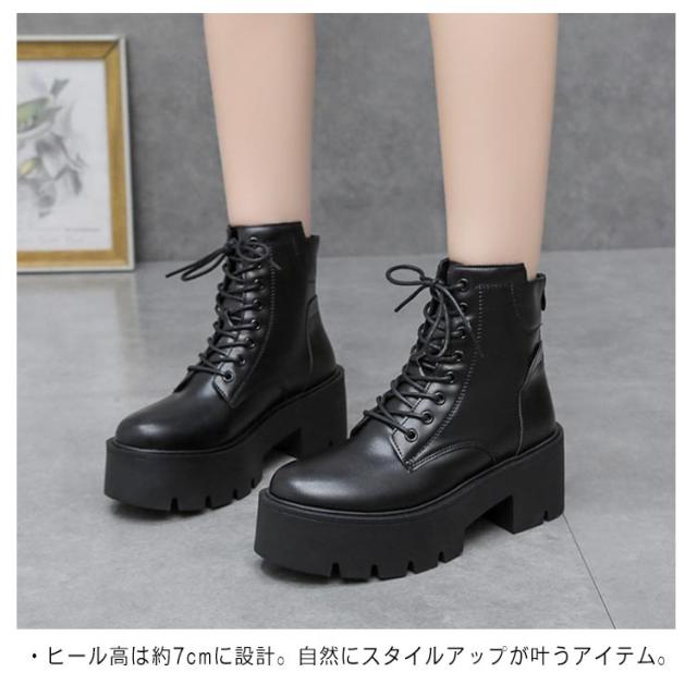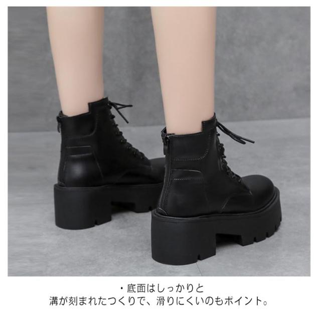 ショートブーツ レディース 厚底 レースアップ ブーツ 編み上げブーツ ワークブーツ 7cmヒール バックジップ ローヒール 歩きやすい 痛くない 履きやすい 走れる コンバットブーツ オールシーズン 靴