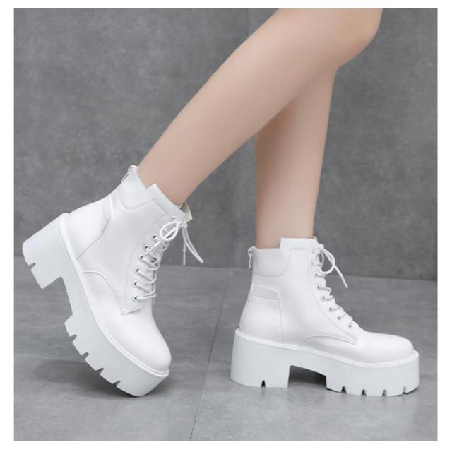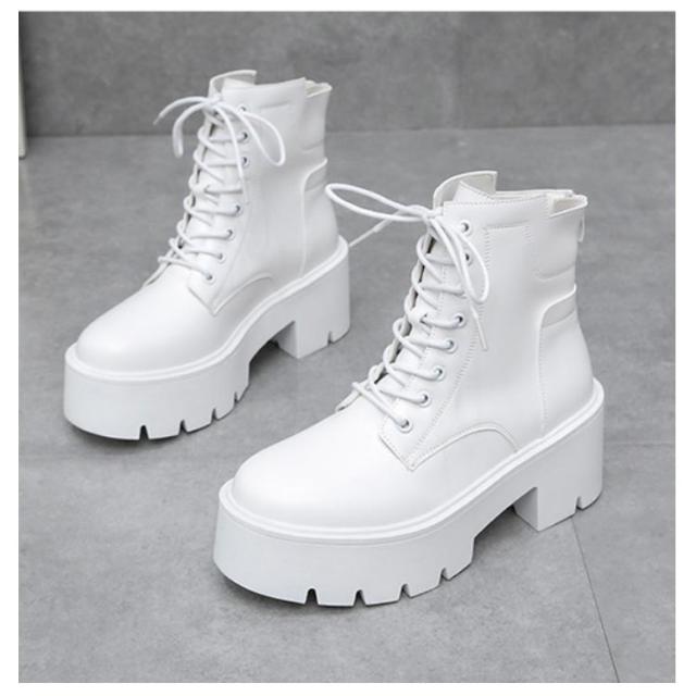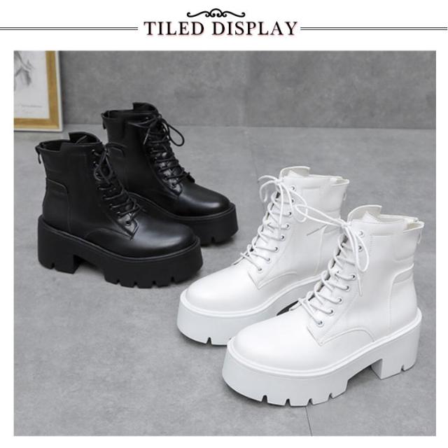 | ・ボリュームソールで存在感のあるレースアップブーツ。 ・クラシカルなレースアップStyleと厚底でおしゃれを格上げ♪ ・編み上げタイプなので、筒周りのサイズ調節自在。 ・バックファスナーで脱ぎ履き簡単。 ・ヒール高は約7cmに設計。自然にスタイルアップが叶うアイテム。 ・底面はしっかりと溝が刻まれたつくりで、滑りにくいのもポイント。 ・カラーは定番のブラックとホワイトの2色。 ・カジュアルなパンツスタイルや、トレンドの韓国コーデと相性抜群です。 | |
