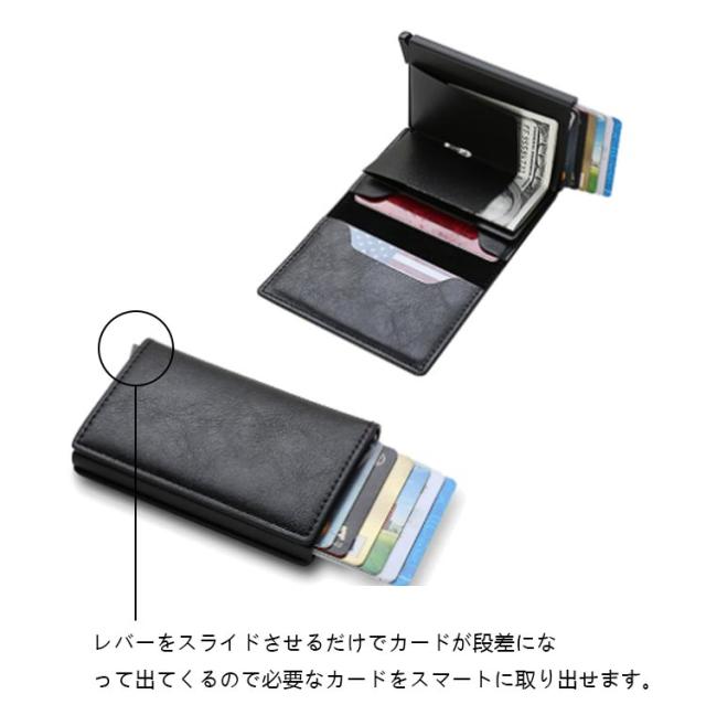 | ・スキミング防止機能が備わったスライド式カードケース。 ・不正アクセスから大切なクレジットカードやキャッシュカード、IDカードなどの情報を守る事ができます。 ・レバーをスライドさせるだけでカードが段差になって出てくるので必要なカードをスマートに取り出せます。 ・スマートフォンよりもコンパクトなのでポケットやバッグはもうかさばりません。 ・最小限の持ち物で出歩きたいランチタイムのおともにもピッタリなんです♪ ・近年急増しているスキミング、クレジットカード情報の盗難から守ります。 ・国内はもちろん海外でも安心してクレジットカードを持ち歩くことができます。 ※最大収納枚数:6〜8枚 | |