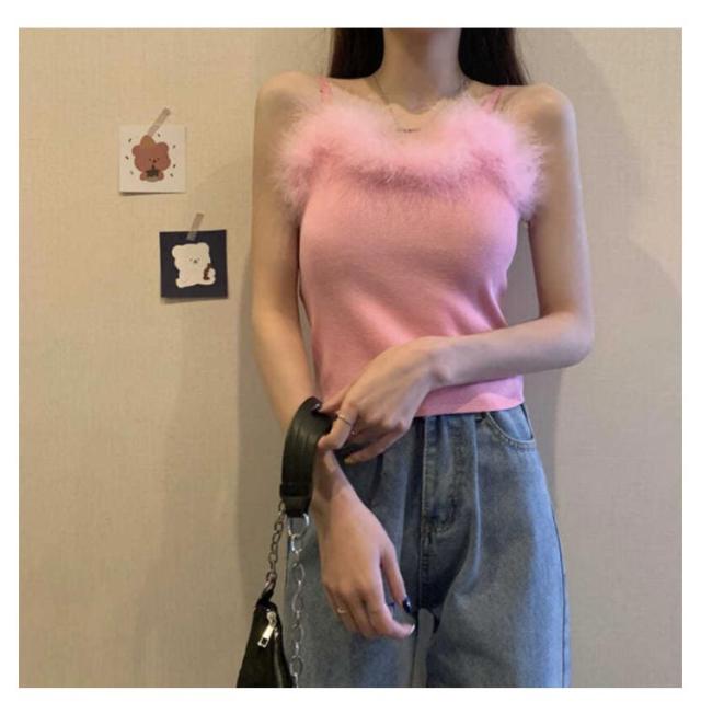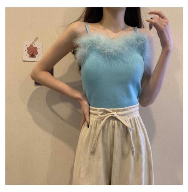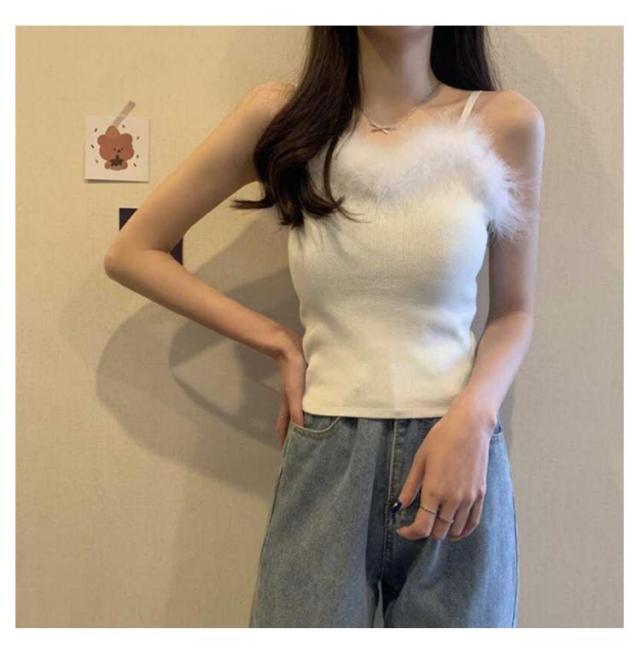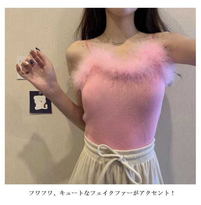 ファーキャミソール ふわふわ キャミ ビスチェ キャミソール インナー しっとりフィットで着心地いい ファー付き ガーリー 仮装 コスプレ ハロウィン インナーキャミ セクシー 綺麗め 韓国ファッション