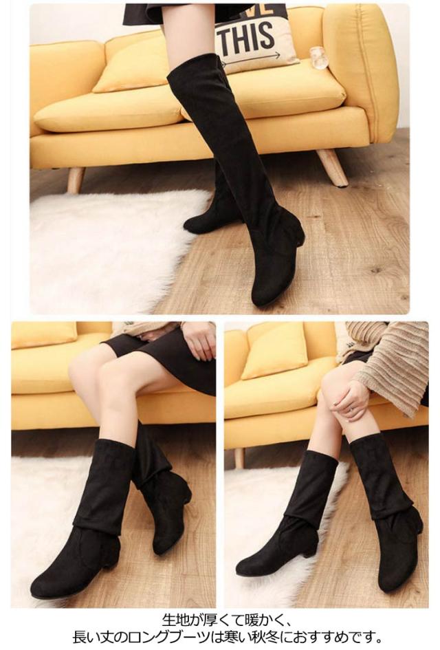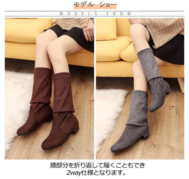 ロングブーツ レディース ブーツ 疲れない ニーハイブーツ ローヒール お洒落 厚底 折り返し 歩きやすい スエード 2way ストレッチ 美脚効果 通勤 デート キレイめ 滑り止め 送料無料