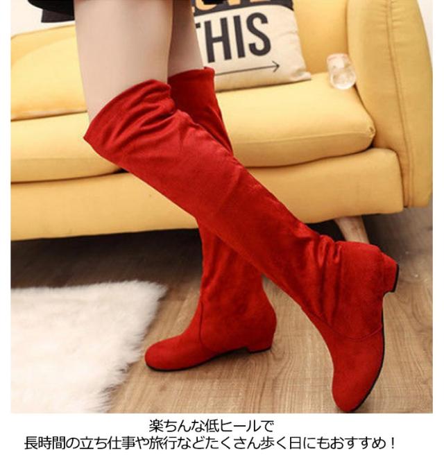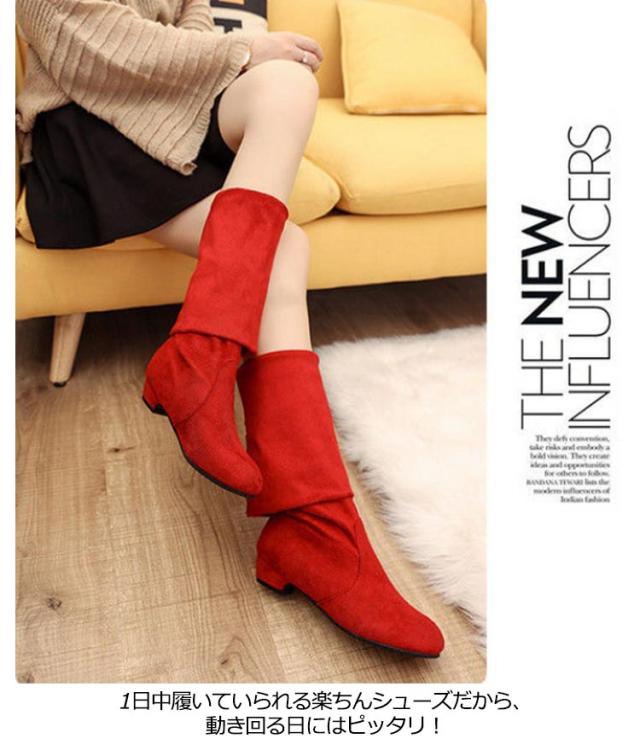 | カジュアルめで大人でも履きやすい2wayニーハイブーツです。 膝部分を折り返して履くこともでき2way仕様となります。 生地が厚くて暖かく、長い丈のロングブーツは寒い秋冬におすすめです。 楽ちんな低ヒールで長時間の立ち仕事や旅行などたくさん歩く日にもおすすめ! 1日中履いていられる楽ちんシューズだから、動き回る日にはピッタリ! | |