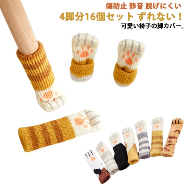送料無料 16個セット 椅子脚カバー 傷防止 静音 脱げにくい 床キズ 防止 チェアソックス ニット 椅子足カバー イス脚カバー イス カバー 脚 椅子 キャップ 細い 4脚分 16個組 滑りにくい ずれない おしゃれ 柄 猫の爪 可愛い