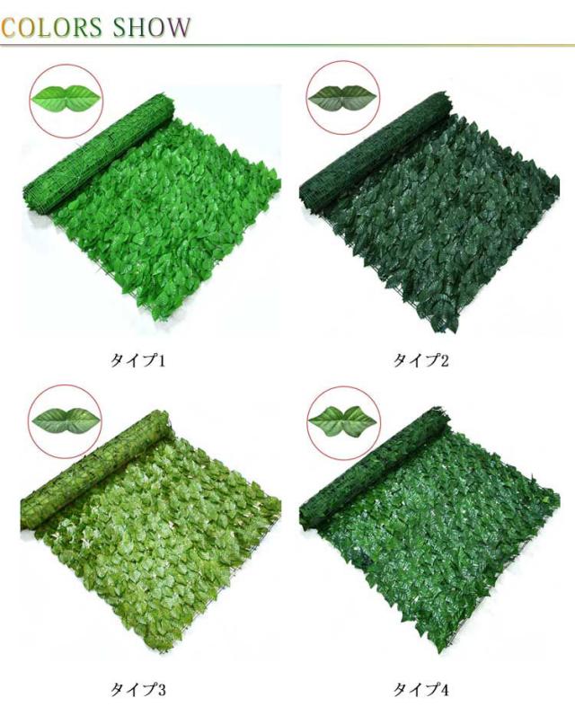 | お洒落でECOな目隠しになる~ 目隠しになるグリーンフェンスです。 本物の植物と異なり、虫の心配もありません。 グリーンフェンスは枯れる心配も要らず、お手入れもほぼ不要です。イミテーションなので面倒な水やり、お手入れも不要。 通気性抜群で爽やかな風が通り抜けます。 庭のフェンス、ベランダのフェンス、駐車場のフェンス、外壁、他、サンシェードとしてもご使用いただけます。 | |