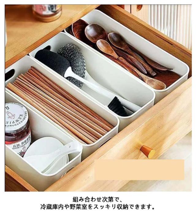 | 引き出し内の整頓に!キッチンの引き出し内整理に便利な間仕切りトレー。 調理小物でごちゃごちゃしがちなシステムキッチンの引き出し内を、すっきり整頓! 組み合わせ次第で、冷蔵庫内や野菜室をスッキリ収納できます。 浅型なので、デザートやパックジュース、散らかりがちな調味料・小瓶などの収納に便利です。 冷蔵庫だけでなく棚などの整理、小物収納やインテリア収納にもお使いいただけます。 | |