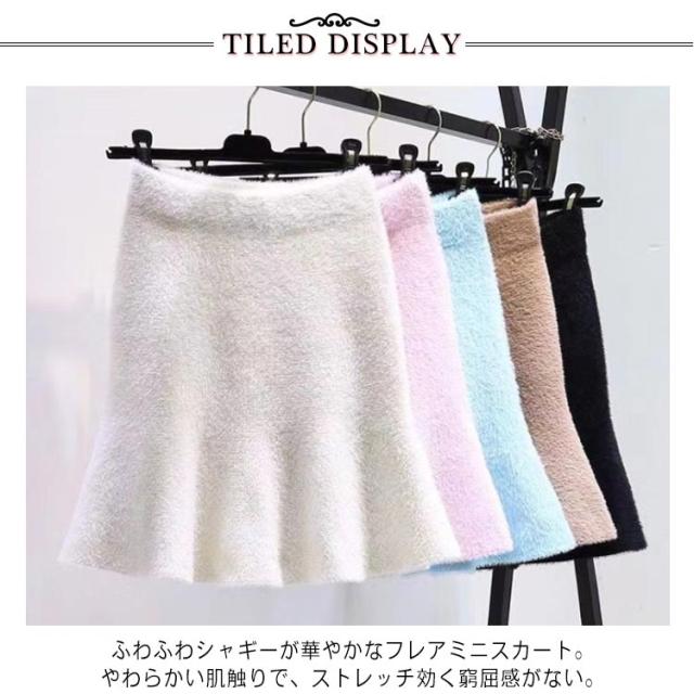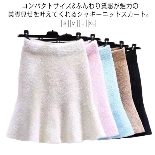 シャギー フレア ミニスカート レディース 秋冬 ボトムス スカート マーメイドスカート シャギー ニット スカート マーメイド ショート タイト ウエストゴム きれいめ あったか 暖かい 防寒 冬物 美シルエット 体型カバー オフィスカジュアル