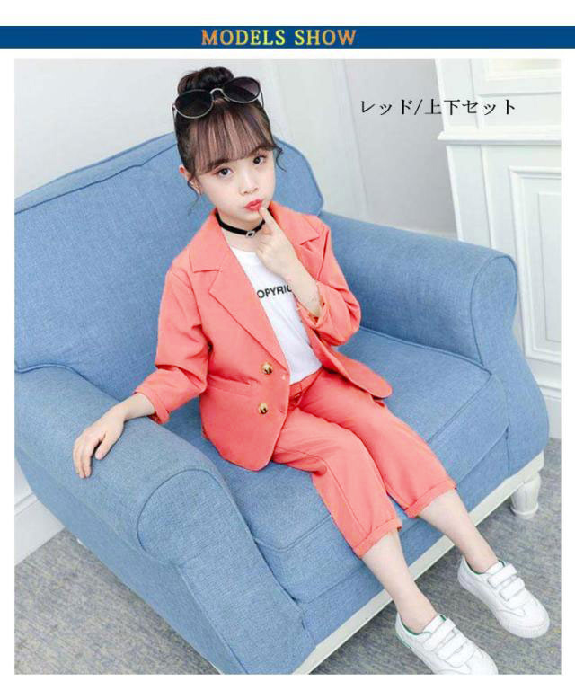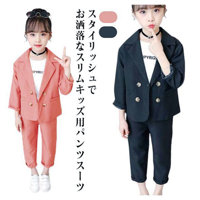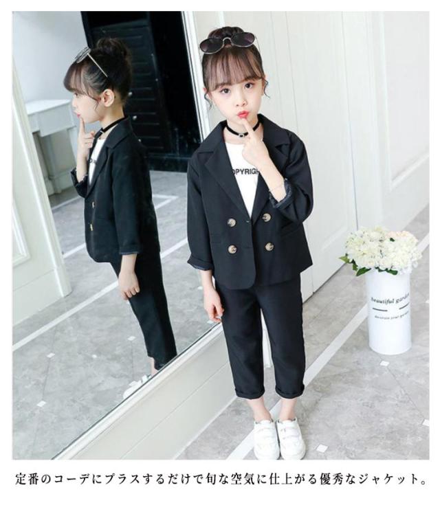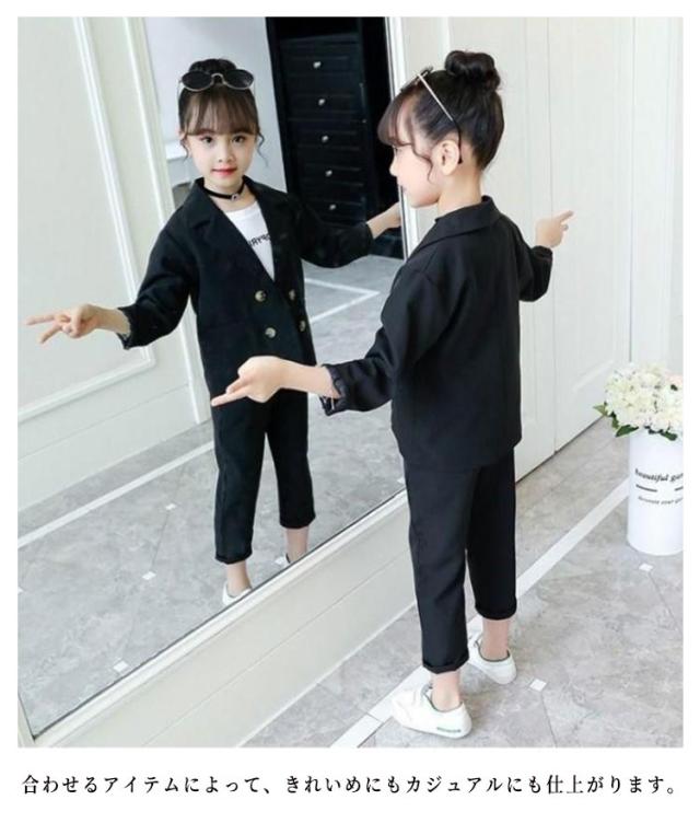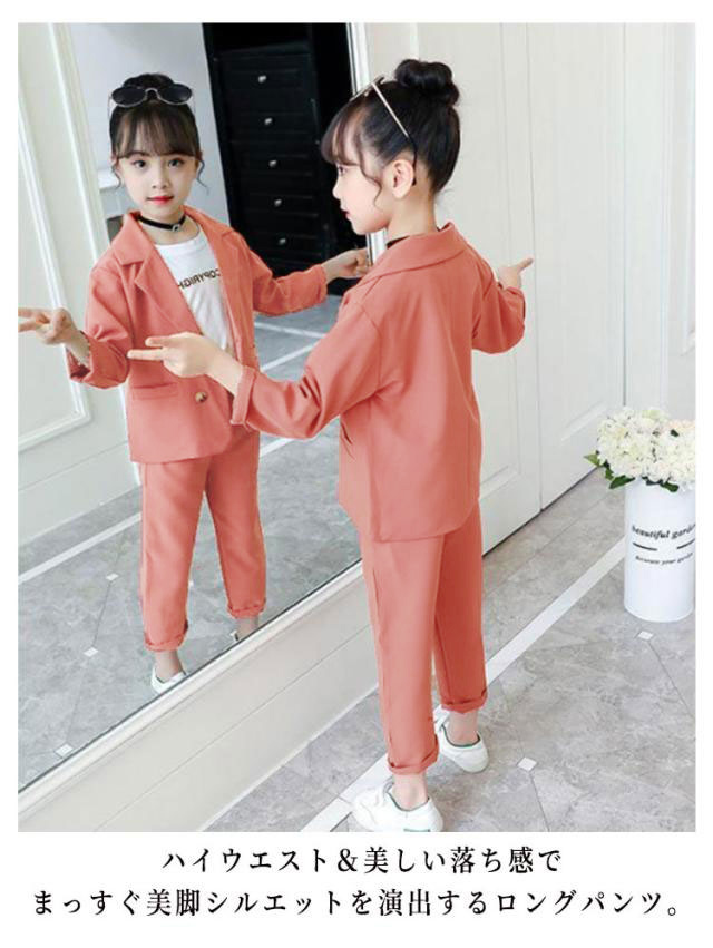 キッズ セットアップ 上下セット 子供服 女の子 ガールズ 上下セット フォーマルスーツ ジャケット パンツ 長ズボン ジュニア 小学生 制服 春秋 カジュアル シンプル フォーマル 入学式 卒業式 入園式 卒園式 結婚式 発表会 キッズスーツ スーツセット 大きいサイズ