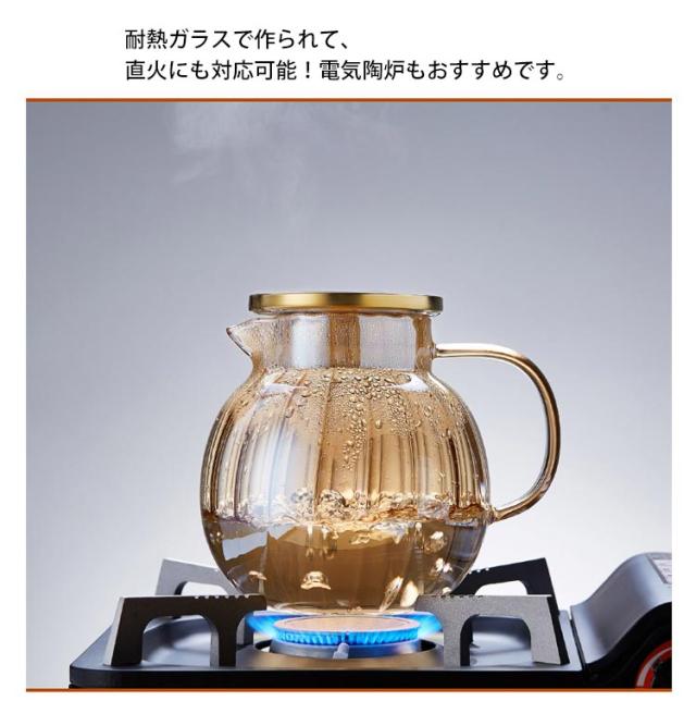 ティーポット カボチャ 耐熱ガラス 1300ml 急須 ティーフォーツー 蓋付き ガラスポット 直火対応 紅茶 フルーツティー リーフティー 花茶 工芸茶 ハーフティー 来客用