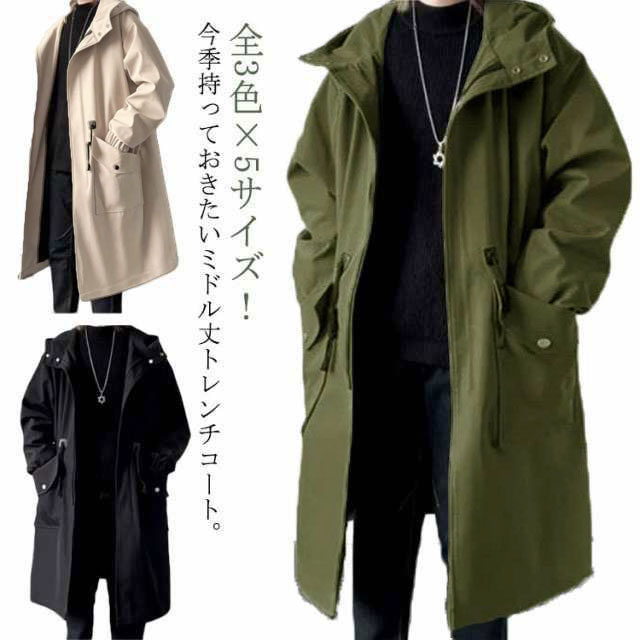 | 全3色×5サイズ!今季持っておきたいミドル丈トレンチコート。 高級感のあるスタイリッシュなデザイン&細身シルエットが他を圧倒するカッコ良さです。 しっかりとハリのある綿混生地を採用し、通気性に優れて、しわにもなりにくいのが秘密。 豊富なカラーバリエーション展開も嬉しい。 飽きのこないデザインでカジュアルからビジネスまで使えて、一枚あるととても便利なアウターです。 | |