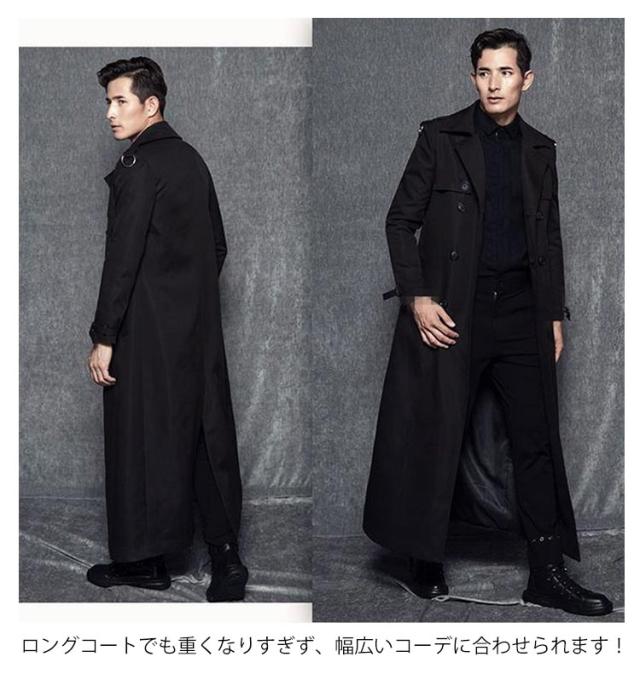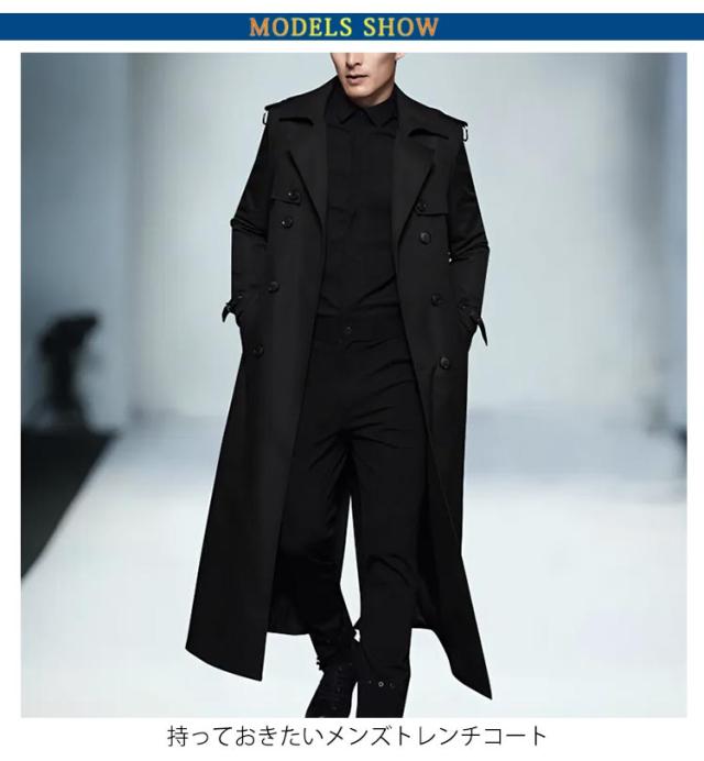 トレンチコート メンズ 春秋 長袖 ロングコート ダブルコート 薄手 ロング丈 ビジネスコート 無地 折り襟 アウター スプリングコート 紳士服 ダブル ゆったり 体型カバー 大きいサイズ カジュアル きれいめ 仕事 通勤 紳士
