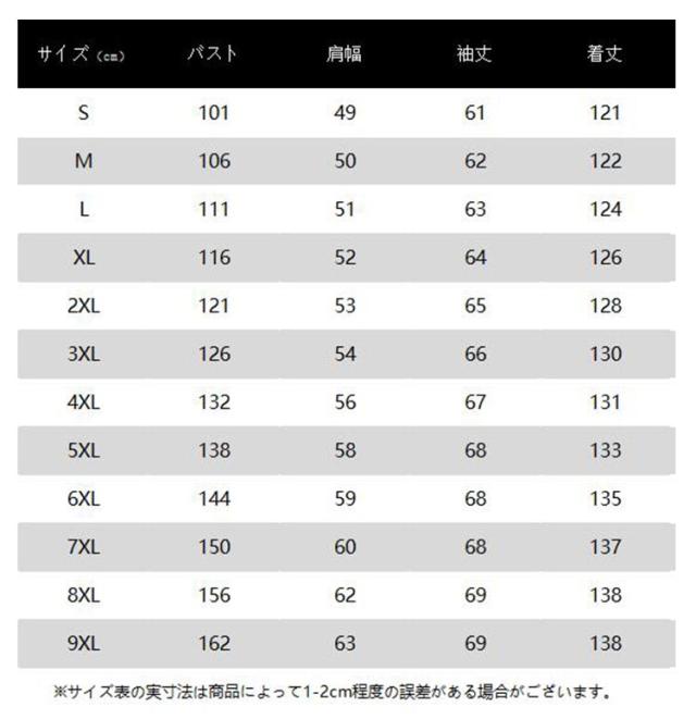 | サイズ | S M L XL 2XL 3XL 4XL 5XL 6XL 7XL 8XL 9XL |