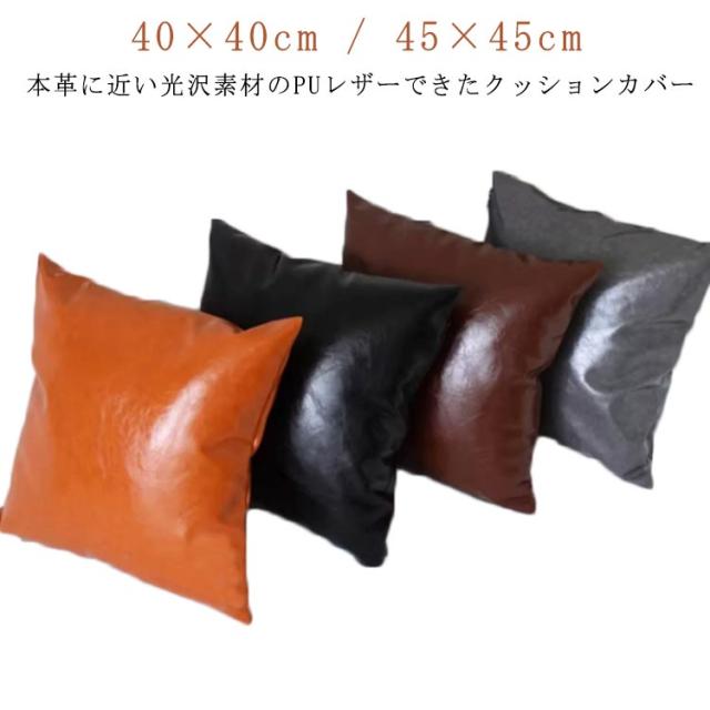 レザー クッションカバー 45×45cm 40×40cm シンプル カフェ レザークッション クッション カバー クッション レザー 革 角型 背当て モダン おしゃれ 新作 ギフト プレゼント 引越し祝い 新居 送料無料