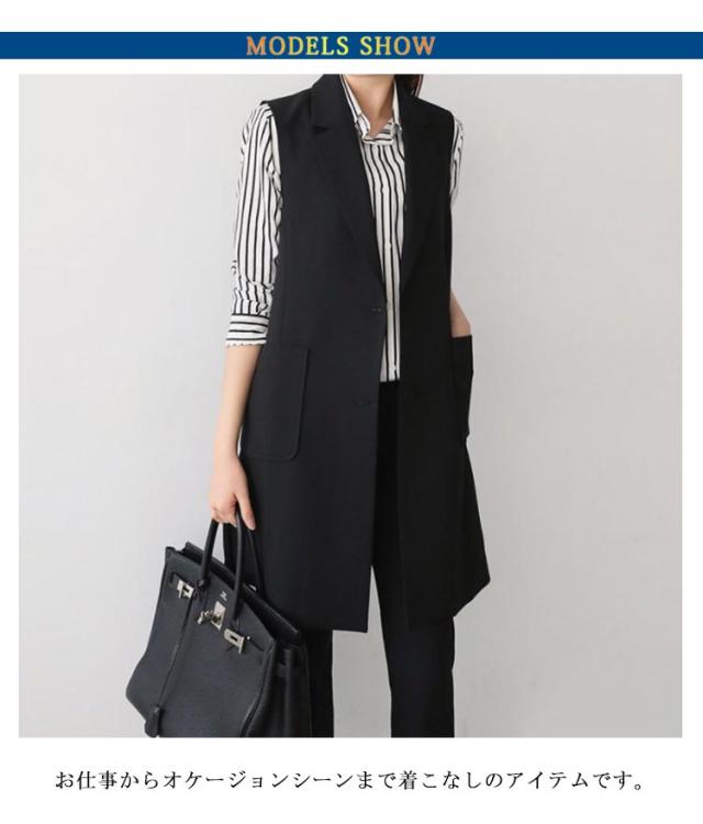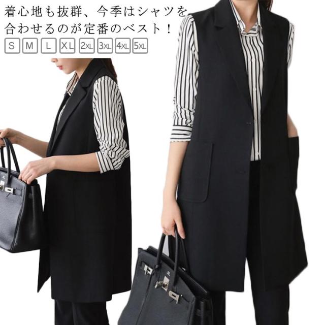 ロングベスト ジレ レディース スーツ ベスト ロング ロングジレ ノースリーブ トレンチベスト テーラード テーラードベスト 30代 40代 春 秋 大きいサイズ フォーマル セレモニー 入学式 卒業式 無地 シンプル レイヤード S M L XL 2XL 3XL 4XL 5XL
