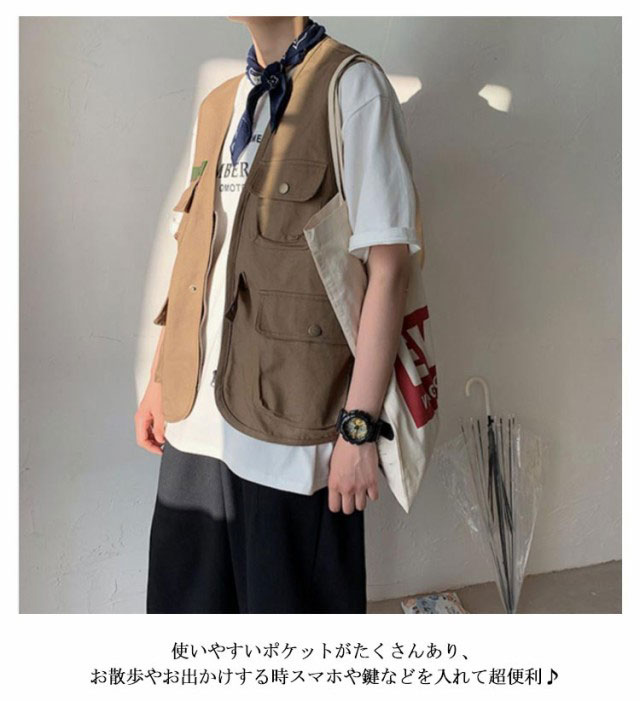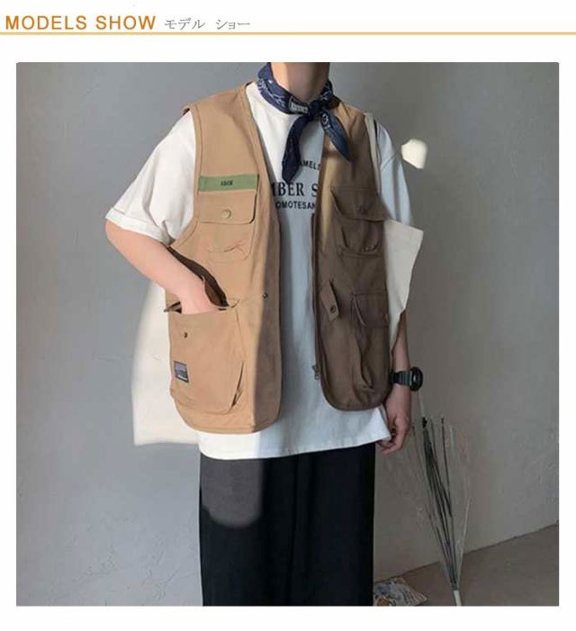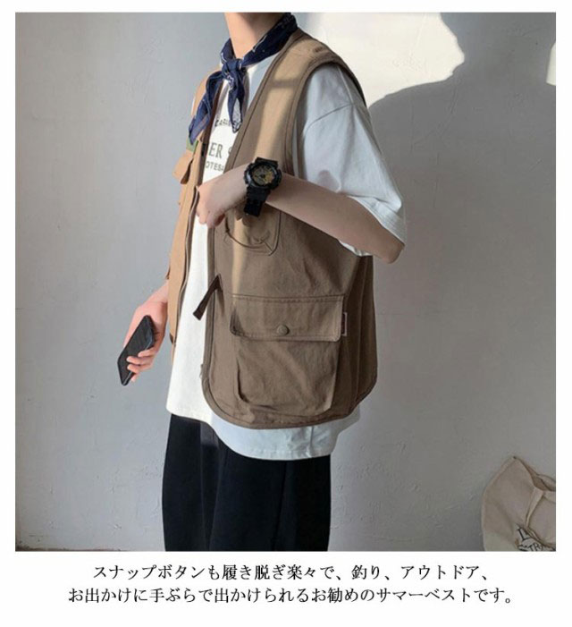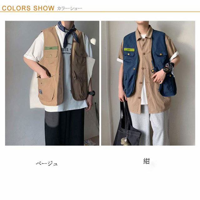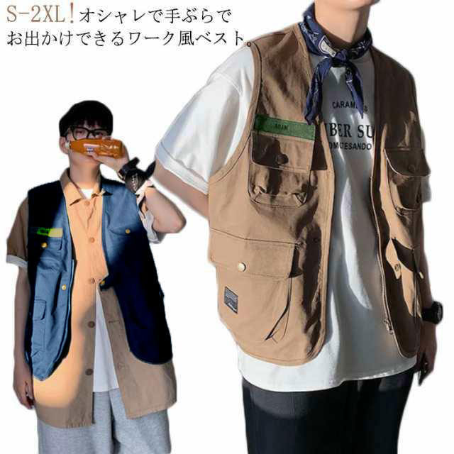 | S-2XL!オシャレで手ぶらでお出かけできるワーク風ベスト。 使いやすいポケットがたくさんあり、お散歩やお出かけする時スマホや鍵などを入れて超便利♪ スナップボタンも履き脱ぎ楽々で、釣り、アウトドア、お出かけに手ぶらで出かけられるお勧めのサマーベストです。 カットソーやシャツなどとのレイヤードコーデもスタイリッシュでお洒落決まり! | |