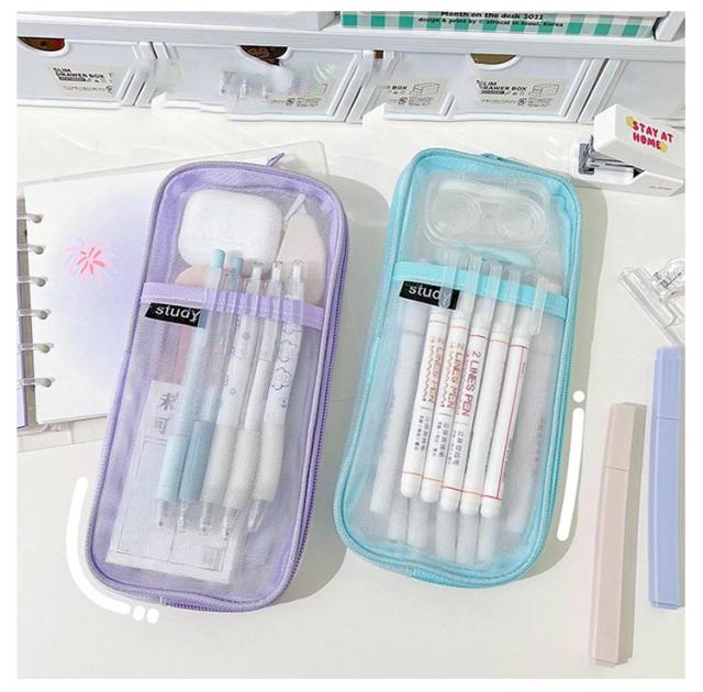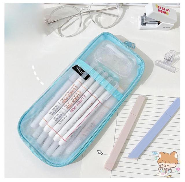 ペンケース 透明 大容量 透明 大人 おしゃれ 仕切り 筆箱 小学生 中学生 高校生 ペンポーチ シンプル おしゃれ メッシュ クリア 化粧品収納 小物入れポーチ 筆入れ 女の子 男の子 文房具収納 韓国 ふでばこ 送料無料