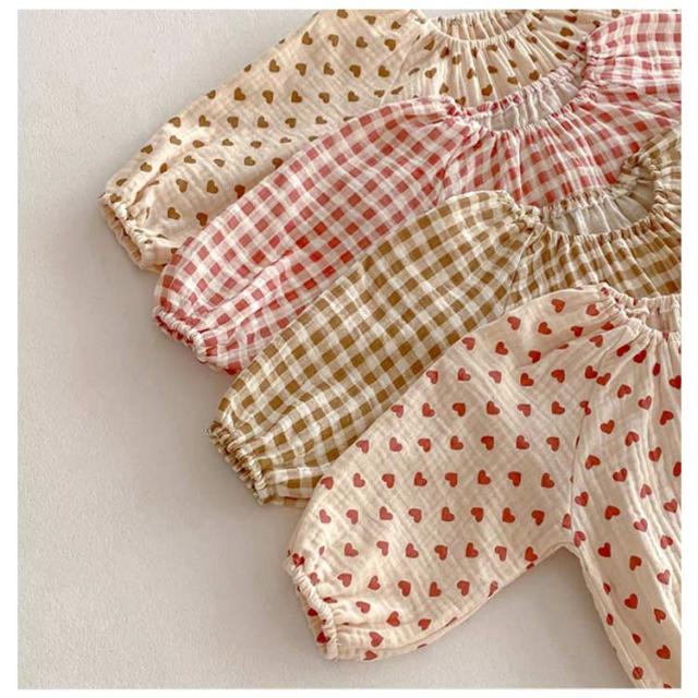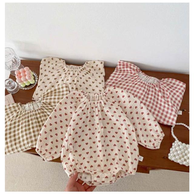 | チェック&ハート 総柄ロンパース ナチュラルな可愛さが届いてすぐに楽しめる♪ 1枚でコーデが完成! | |
