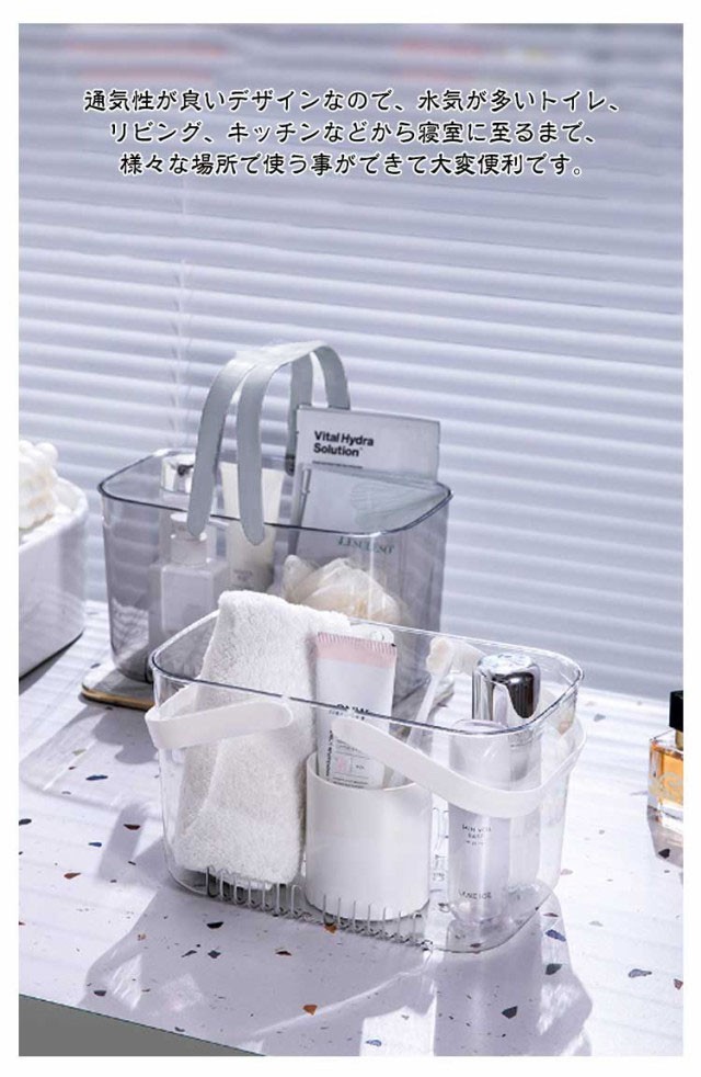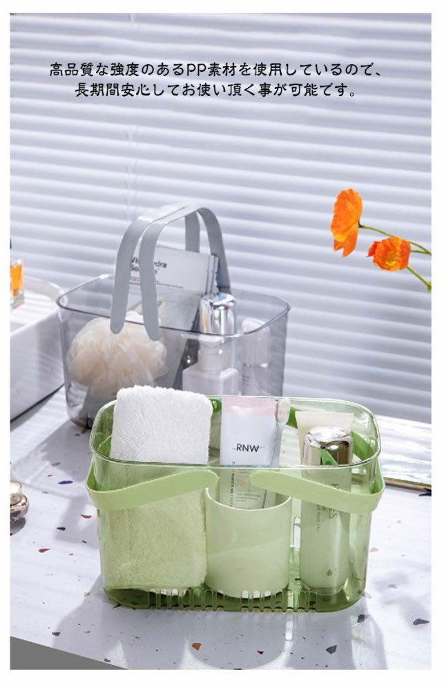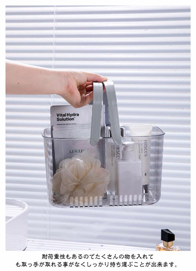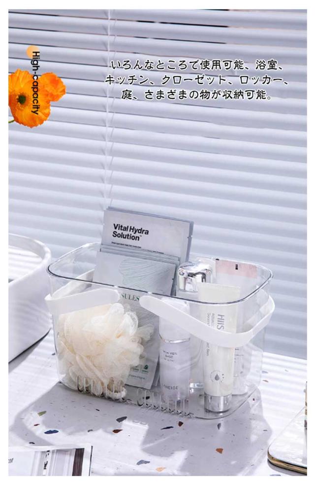 | お風呂グッズ、化粧品、歯ブラシなどたくさんの小物が収納できる大容量バスケットです。 通気性が良いデザインなので、水気が多いトイレ、リビング、キッチンなどから寝室に至るまで、様々な場所で使う事ができて大変便利です。 握りやすくて持ち運びしやすい取っ手がついており、持ち運ぶ際など大変便利です。 耐荷重性もあるのでたくさんの物を入れても取っ手が取れる事がなくしっかり持ち運ぶことが出来ます。 高品質な強度のあるPP素材を使用しているので、長期間安心してお使い頂く事が可能です。 いろんなところで使用可能、浴室、キッチン、クローゼット、ロッカー、庭、さまざまの物が収納可能。 | |