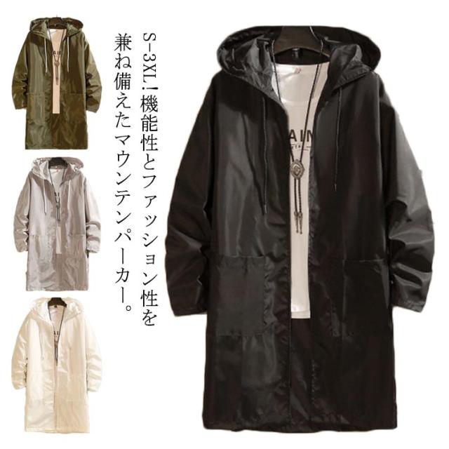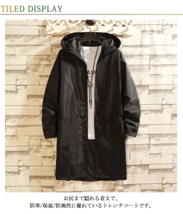 スプリングコート アウター ビジネス コート メンズ カジュアルコート マウンテンパーカー フード付き トレンチコート 通勤 春 ビッグシルエット ステンカラーコート 送料無料 キレイめ ロングコート ビジネスコート 大きめ 黒 大人 通学 春服 秋服 秋 冬服