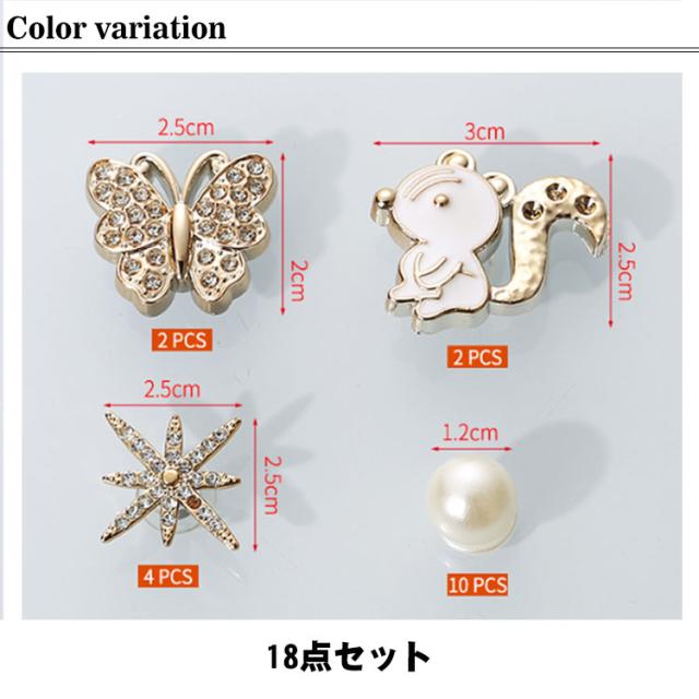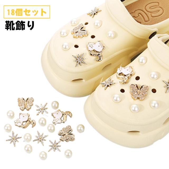 シューアクセサリー 18個セット シューパーツ レディース シューズアクセサリー 靴飾り 女性 アクセサリー おしゃれ かわいい ガールズ キラキラ サンダル用 シューチャーム パール デコレーション