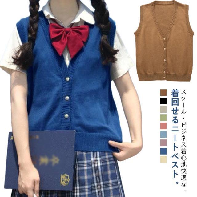 全9色 スクールベスト 前開きタイプ ニットベスト スクール ベスト 学生服 ノースリーブ 無地 ゆったり Vネック ニット ベスト チョッキ オールシーズン スクールセーター 学生 女子校生 通学 通勤 中学生 高校生 スクールニット