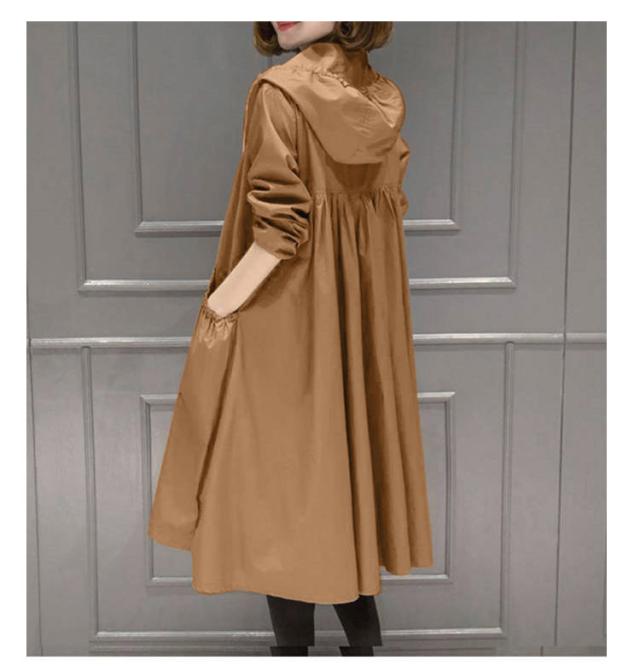 | 春秋にピッタリフード付きトレンチコート。 大きめのフード付きでお酒落さアップ。 裾にかけてふんわり広がるシルエットで大人フェミニン感をプラス! 個性的でお落なデザインなのでさらっと羽織るだけでスタイルにこなれ感が生まれ、かっちりしすぎずスッキリ着られます。 いつものコーデにさっと羽織って、大人っぽく決まるおすすめコートです♪ | |