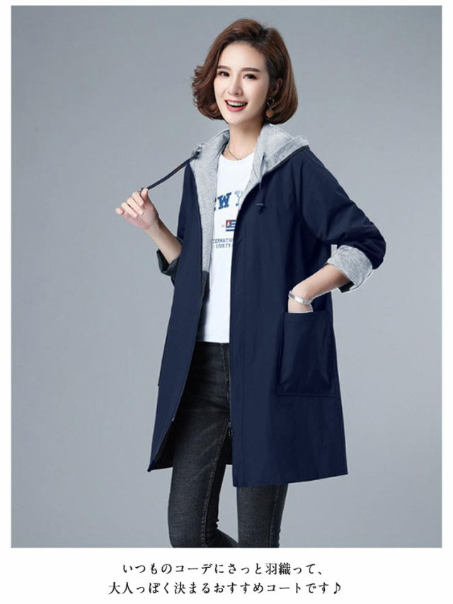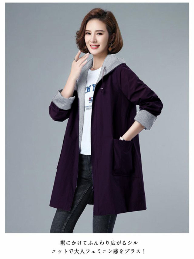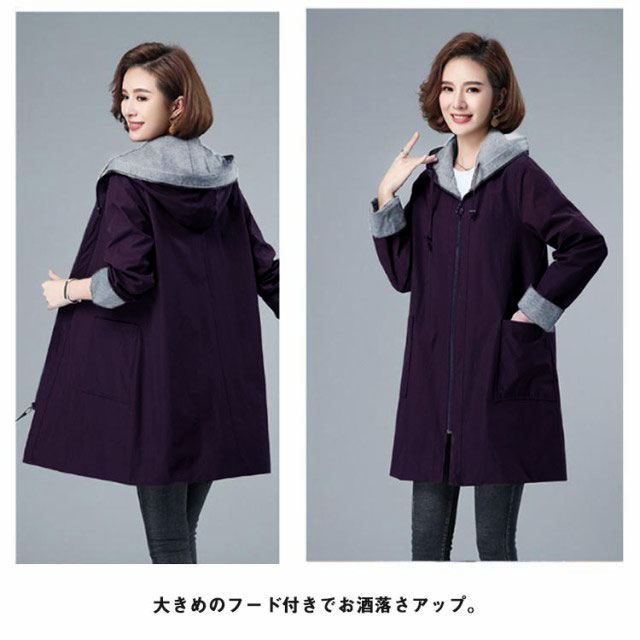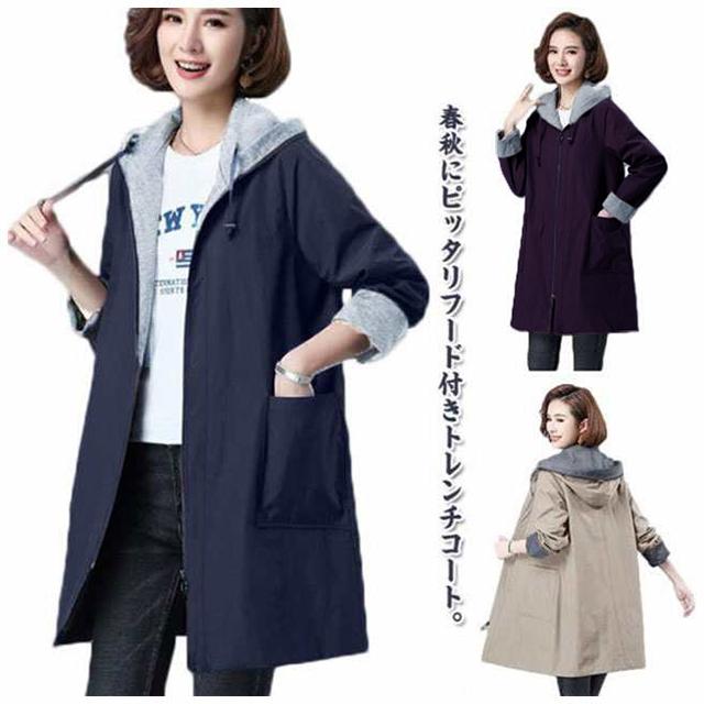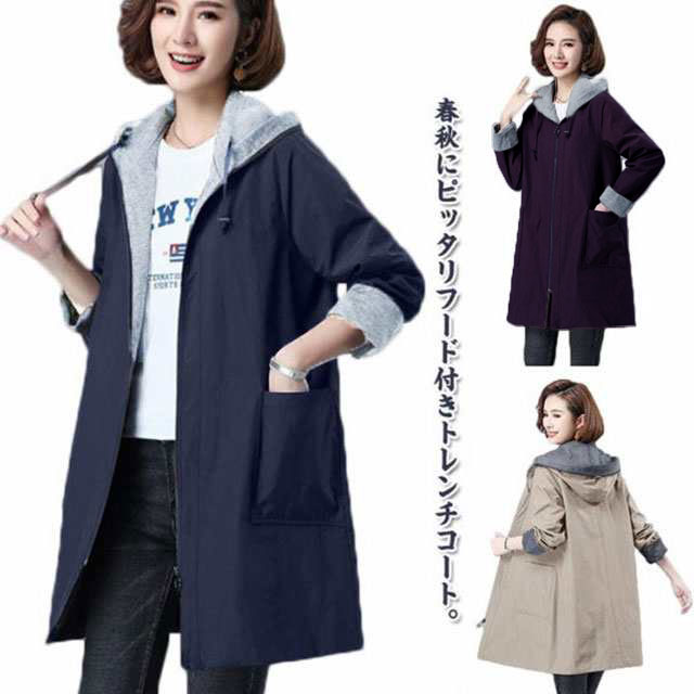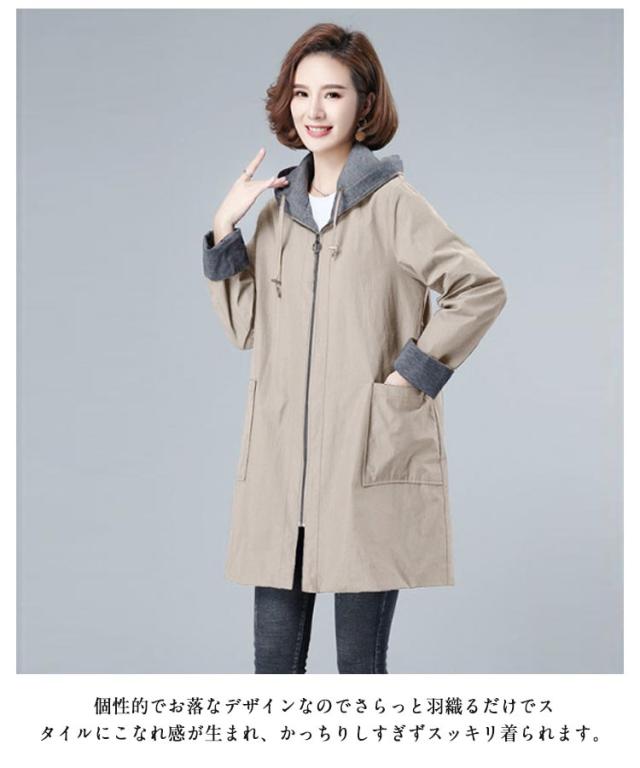 春服 フード付き トレンチコート ロングコート スプリングコート ゆったり 大きいサイズ 長袖 レディース 春コート 春物 ライトアウター 無地 ジャケット カジュアル 大きいサイズ 体型カバー 通勤 40代 50代 60代