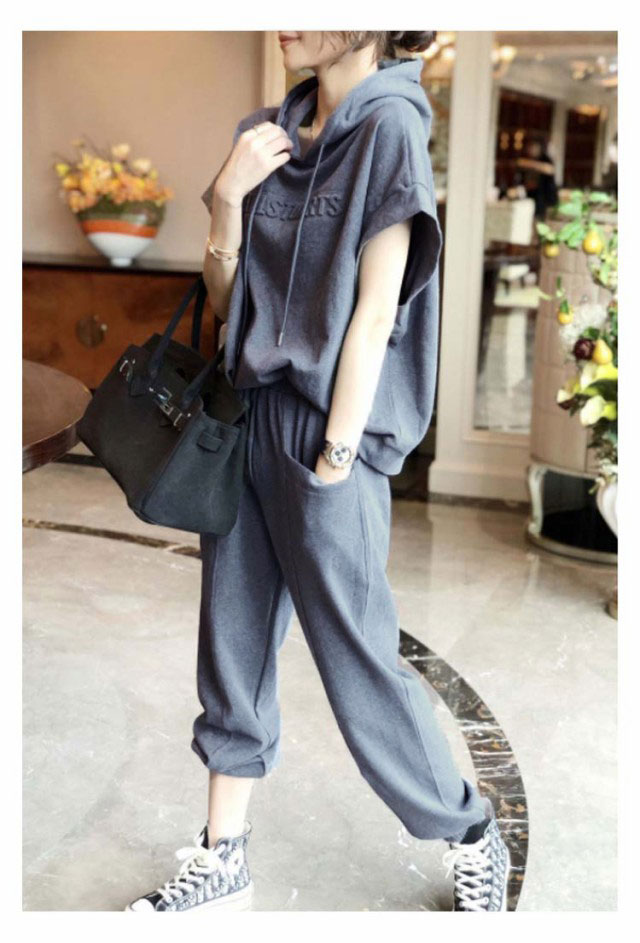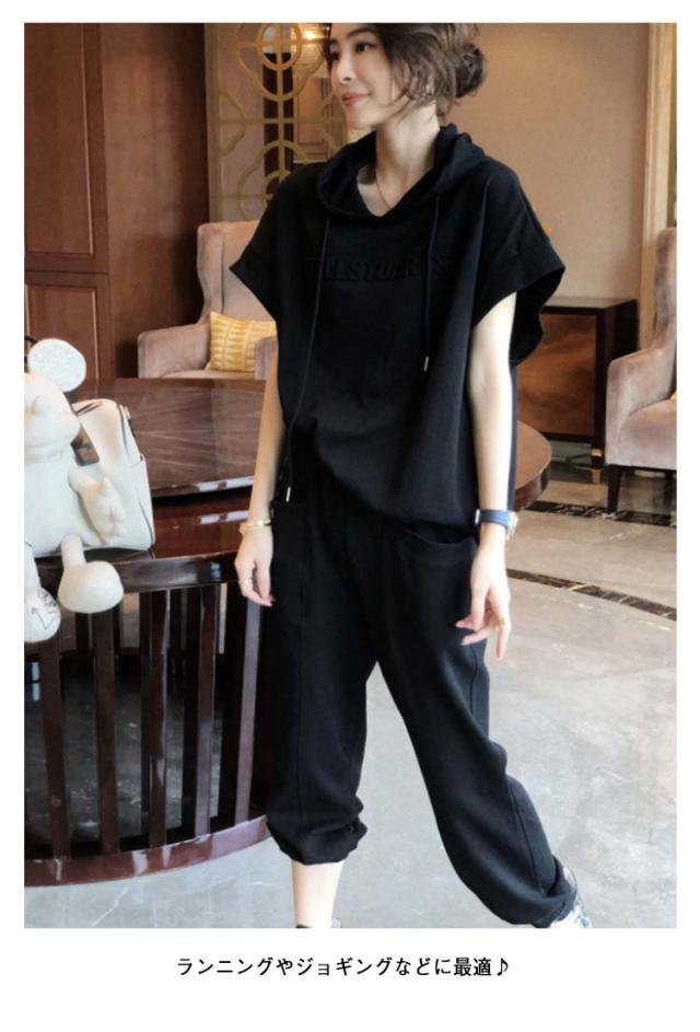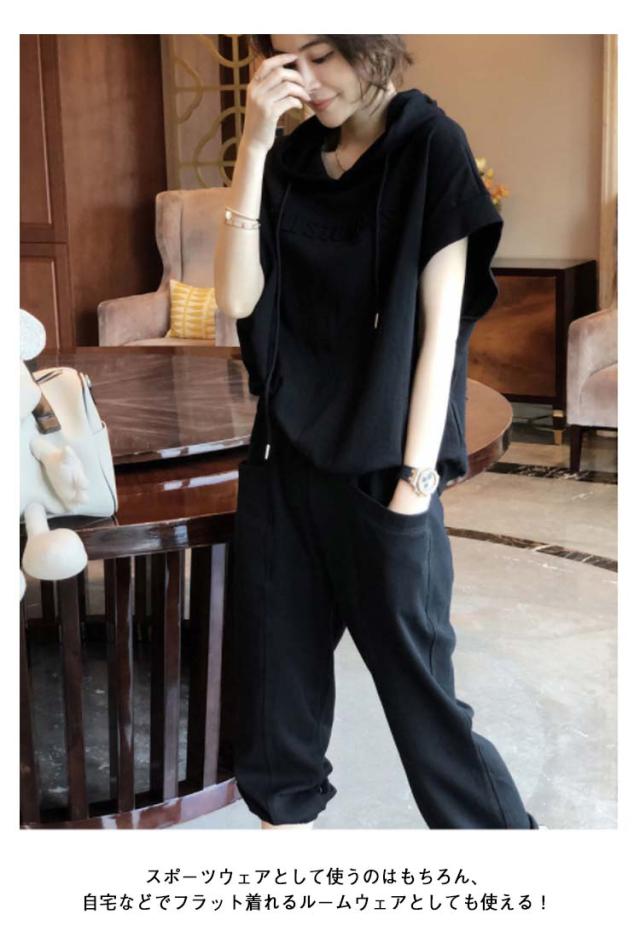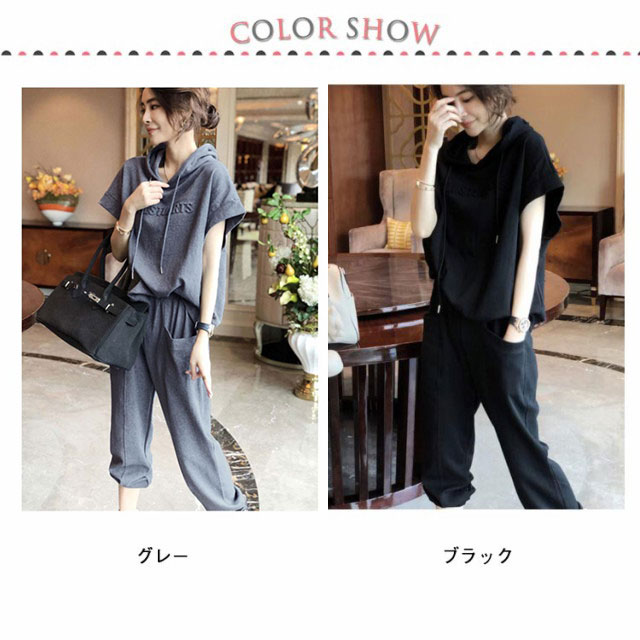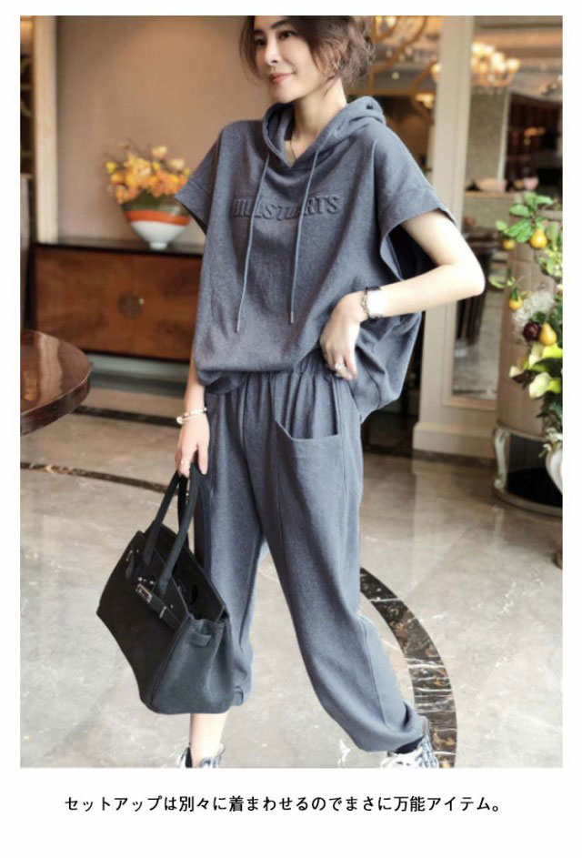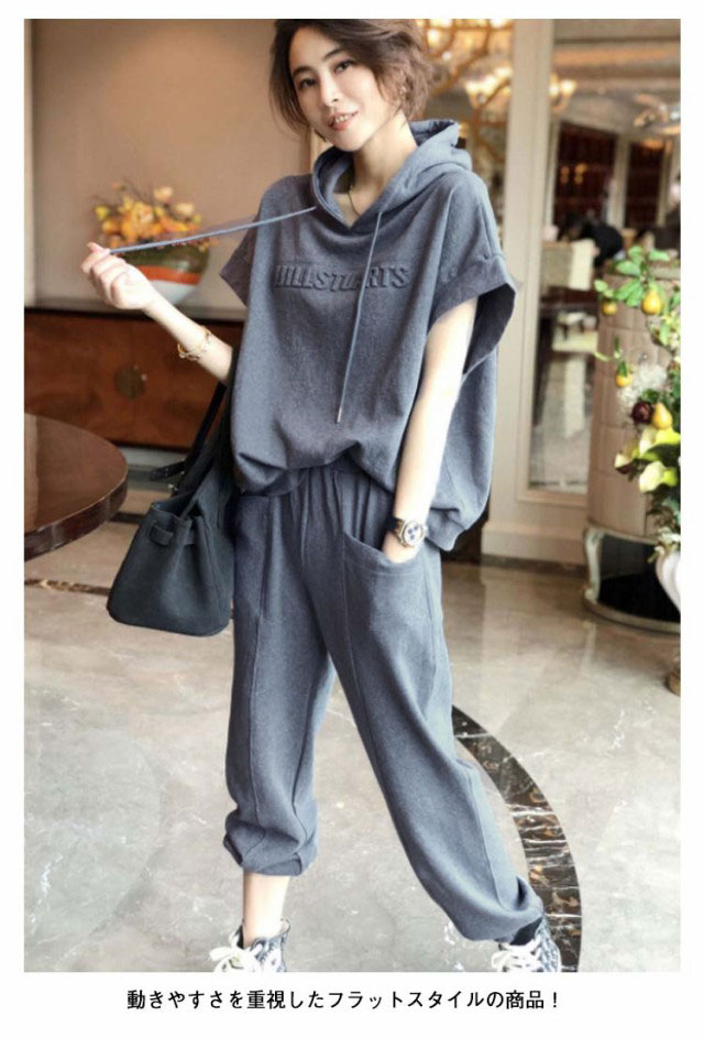 セットアップ スウェットパーカー 無地 半袖 ジャージ レディース 部屋着 上下 セット パーカー上下セット 大きいサイズ ルームウェア スウェットパンツ スエットパンツ 大きい 薄手 グレー トップス 修学旅行 入院 産後