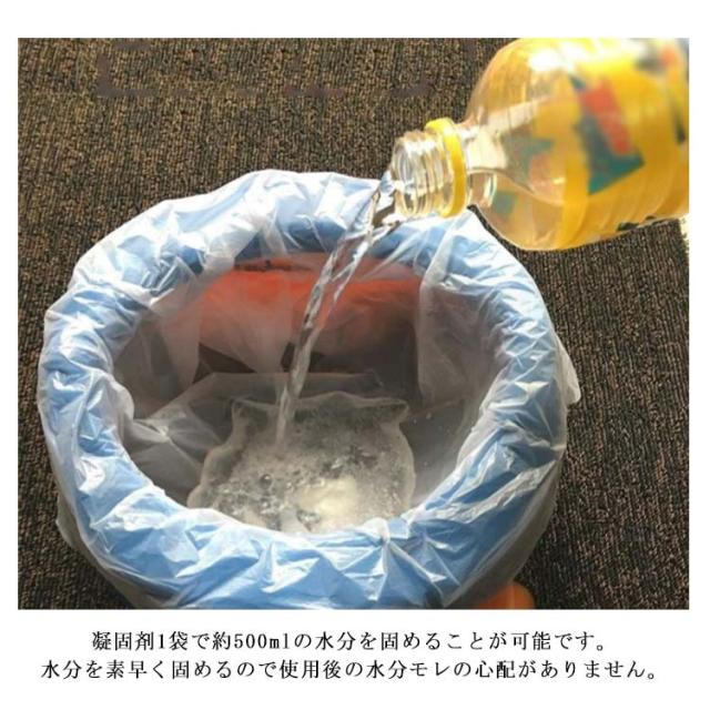 | 200回分 非常用簡易トイレ用凝固剤 凝固剤は個別包装となっており、衛生的で保管・持ち運びしやすいポータブルトイレ用凝固剤。 凝固剤1袋で約500mlの水分を固めることが可能です。水分を素早く固めるので使用後の水分モレの心配がありません。 水がなくても、ふりかけるだけでゼリー状に固めるから、被災など時に重宝する間違いありません。 アウトドアや車内の簡易トイレだけでなく、介護用ポータブルトイレにも役に立ちます。 | |