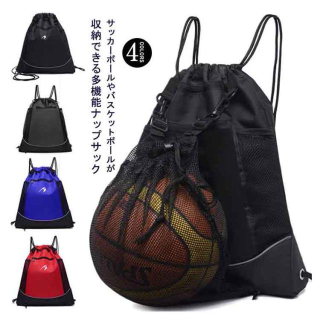 ナップサック スポーツ ボール バッグ 収納 撥水 サッカー バスケット バレー メッシュ 袋 付き バスケットボール サッカーボール収納 ジュニア キッズ シンプル 軽量 デイパック バックパック 大容量 鞄 サッカーバッグ ボール収納 シンプル 学生 送料無料