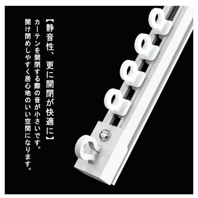 | 【取り付け簡単な粘着式カーテンレール】 「正面付けタイプ」と「天井付けタイプ」の2種類があり、ご自宅に合わせてお選びいただけます。 壁面に取り付けます。 初心者でも簡単に設置できます。 【20サイズ展開】 1.1mから3mまでの幅広いサイズ展開! 自由にカートすることもでき、お好みの長さに調節できます。 【静音性、更に開閉が快適に】 カーテンを開閉する際の音が小さいです。 開け閉めしやすく居心地のいい空間になります。 【部屋を選ばないシンプルデザイン】 シンプル、スタイリッシュデザインで、オシャレな印象を演出します。 接続部分は内蔵式なので継ぎ目が見えず、意匠性を損なわないデザインです。 二段ベッド、出窓、小窓、間の仕切り、本棚等にお使いいただけます。 | |
