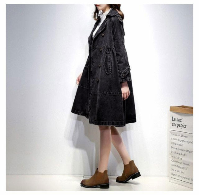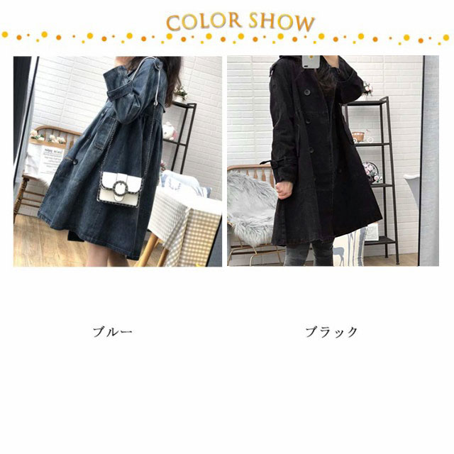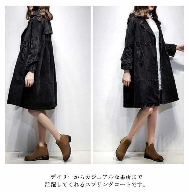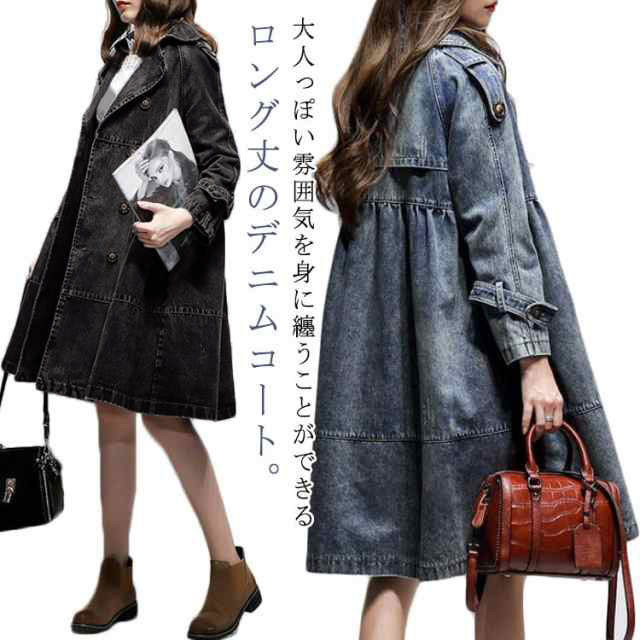 デニム スプリングコート レディース トレンチコート アウター デニムコート デニムジャケット 大きいサイズ ロング丈 コート ロングコート Gジャン ジージャン ダブルボタン 羽織り 通勤 通学 カジュアル 体型カバー M L XL 2XL 3XL