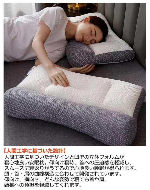 | 仰向き・横向きどちらの寝姿勢もサポートする頸部支持構造の枕です。 【人間工学に基づいた設計】 人間工学に基づいたデザインと凹型の立体フォルムが寝心地良い安眠枕。仰向け寝時、首への圧迫感を軽減し、スムーズに寝返りがうてるので心地良い睡眠が得られます。頭・首・肩の曲線構造に合わせて開発されています。仰向け、横向き、どんな姿勢で寝ても首や肩、頚椎への負担を軽減してくれます。 【絶妙な固さの高品質ウレタン】 高品質ウレタン使用。絶妙な固さが最高の安眠を体感させてくれます。体圧を均一に吸収・分散して、通常の枕とは比べ物にならない快適さと、安定感を提供します。 【丸洗いができて清潔、やさしい肌触り】 すべて丸洗いができるので、ニオイや汚れなどの心配がなく、いつも清潔に保つことができます。 【ギフトに適】 誕生日、クリスマスプレゼントとしておすすめします。ほかには、ご結婚/ご出産/お引っ越し/ご入学/ご就職/ご新築/リフォーム/お中元/お歳暮/父の日/母の日/敬老の日などのお祝い・贈り物(ギフト)にも適応です。 | |