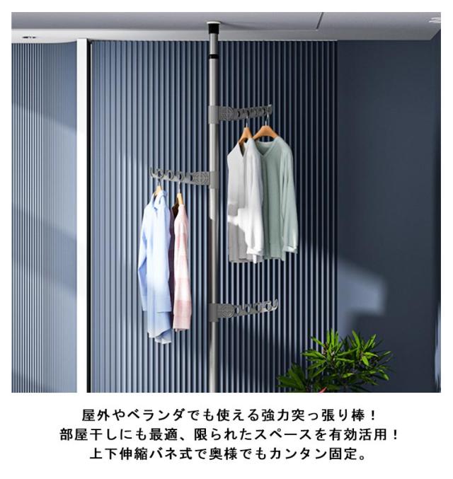 つっぱりポールハンガー 突っ張り棒 つっぱり棒 簡単設置 伸縮 天井 室内干し 壁面 収納 棚 ポールハンガー ハンガーラック パイプ つっぱりラック 突っ張りラック 折り畳み式のラック つっぱり棚 突っ張り 突っ張り棚 クローゼット 省スペース 伸縮式 ネジ不要