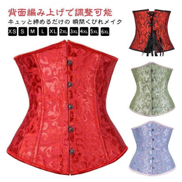 コルセット 編み上げ 総レース柄 アンダーバスト 大きいサイズ くびれ 体型カバー ウエスト 引き締め スタイル アップ 腰痛 ベルト ボディシェイパー すっきり 猫背 オールシーズン 補正下着 下着 お出かけ 補整 肋骨 肋骨シェイプ 衣装 産後 体型戻し