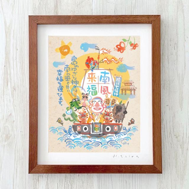 グラフィックアート 壁掛け おしゃれ 絵画 額付き 新築祝い 誕生日 プレゼント 島の彩 No.026 / 琉球七福神 Sサイズ