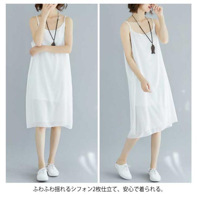 シフォン仕立て透けない!キャミソール ペチコート ワンピース キャミソールワンピース インナーワンピース ロングキャミソール キャミ ロング丈 シフォン ふんわり 夏 夏物送料無料
