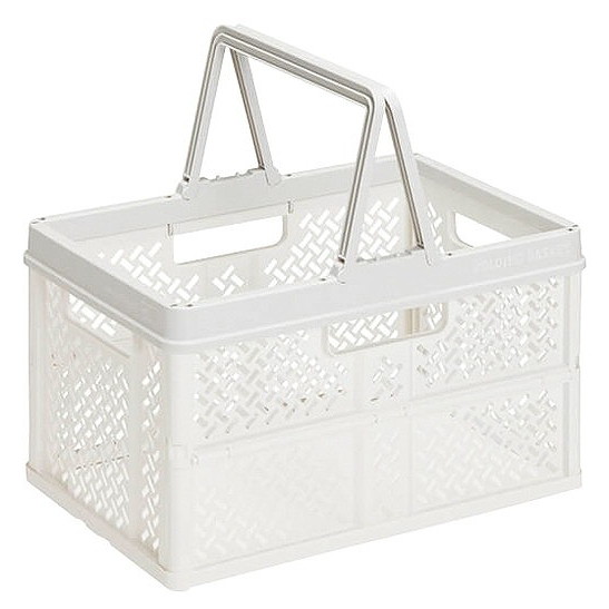 ●おしゃれなデザインのハンドル付きバスケットです。折りたためるので、使用しないときはコンパクトに畳むことができます。おもちゃや衣類、食料品の収納やレジャー時の荷物入れなど幅広くお使いいただけます。