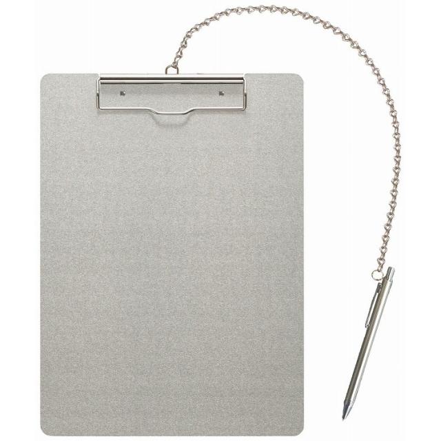 板面:アルミ(アルマイト加工),クリップ部チェーン:ステンレス(SUS430) ペン:ステンレス(SUS430)