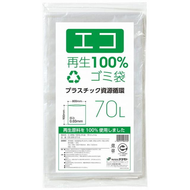 エコ再生100%ごみ袋(10枚入)70L DS2003730 清掃・衛生用品掃除用品 ゴミ袋(代引不可)