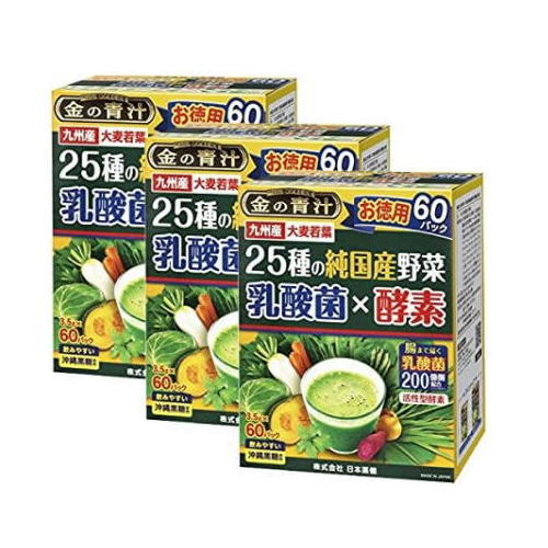 25種の純国産野菜乳酸菌×酵素 3.5g×60包×3箱セット 金の青汁 日本薬健