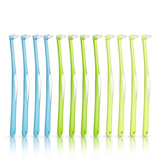 矯正用歯ブラシ:磨き残しがちな部位の清掃用の部分磨き歯ブラシ。矯正部分、歯周ポケットや弱ってしまった歯と歯の間の清掃に優れています。奥歯まで大きく口を開けなくてもしっかり届きます。歯ぐきに負担を掛けたくない方におすすめです。