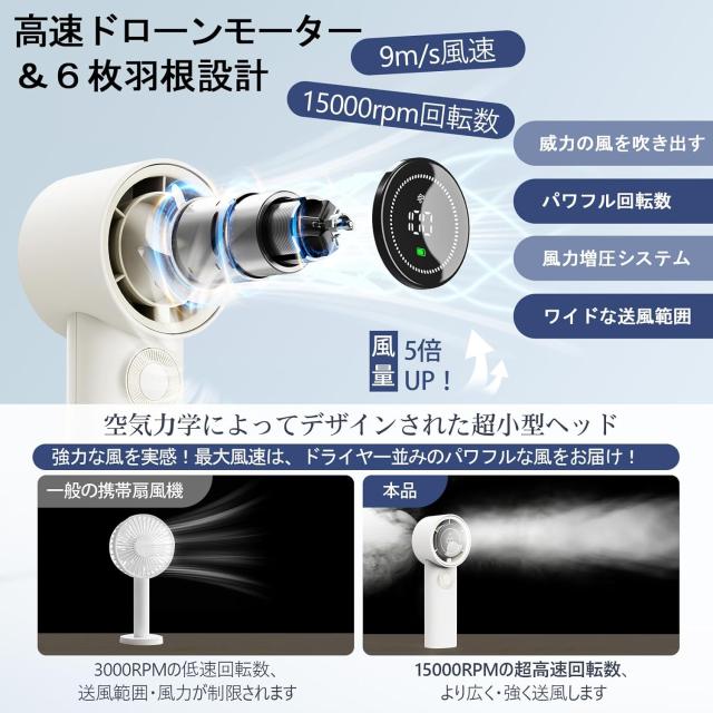 【山誉】 ハンディファン 強力 手持ち扇風機 扇風機 ハンディ扇風機【15000RPM強風&25段階風量調節】携帯扇風機 ハンディ扇風機 USB充電式 最長30時間連続使用 5000mAh大容量バッテリー ポータブルターボ扇風機 軽量 熱中症/暑さ対策 ストラップ付き