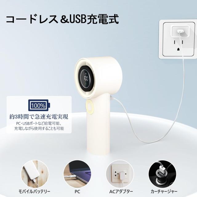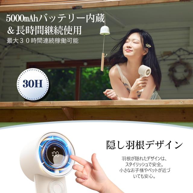 このUSB充電式扇風機は5000mAh大容量バッテリーを内蔵して、フル充電は僅か3.5時間かかり、消費電力を低減できる省エネハンディ扇風機です。1回のフル充電で最大30時間の連続使用が可能です。頻繁に充電する手間を減少できます。朝から夜まで爽やかな風を感じてください。汎用性の高いUSB Type-C充電ポートを搭載、多様な充電方法に対応、パソコンや充電器、モバイルバッテリーで充電可能で、外出中でも電源切れことを心配入れません。日帰り旅行に適用していて、夏の外出活動にご親友と嬉しさを存分に楽しめます。