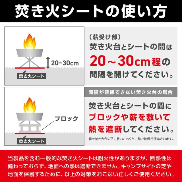 耐熱素材であるガラス繊維を使用し、地面を傷つけず焚き火や料理を楽しめます。